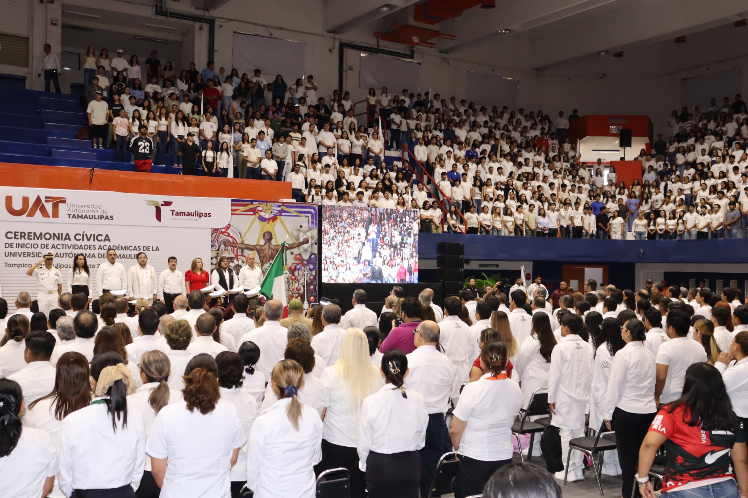 El rector de la Universidad Autónoma de Tamaulipas (UAT), Dámaso Anaya Alvarado, declaró formalmente inaugurado el ciclo escolar Otoño 2025, con la Ceremonia Cívica de Apertura de Actividades Académicas que presidió en el Gimnasio Multidisciplinario del Campus Tampico.
