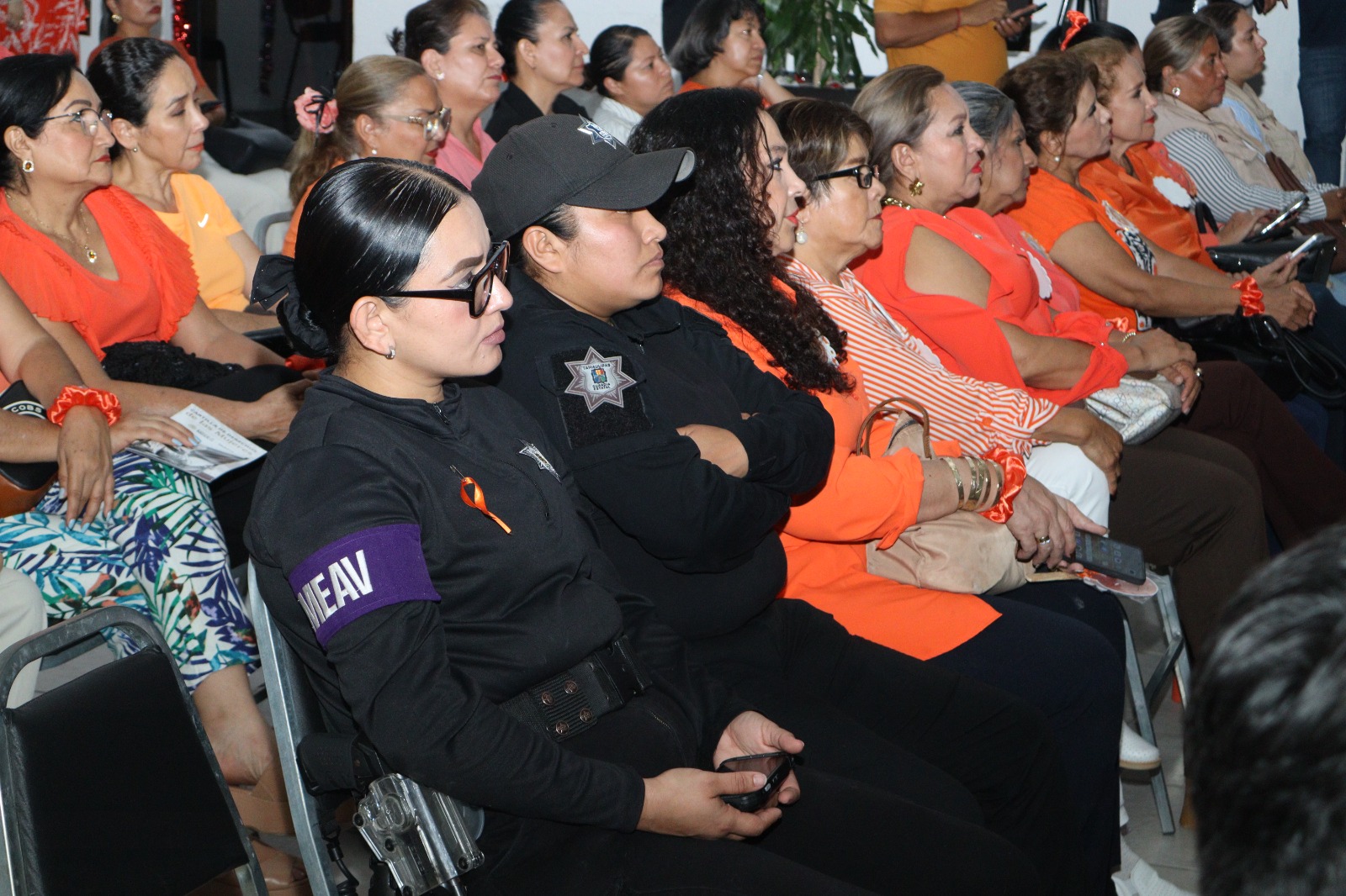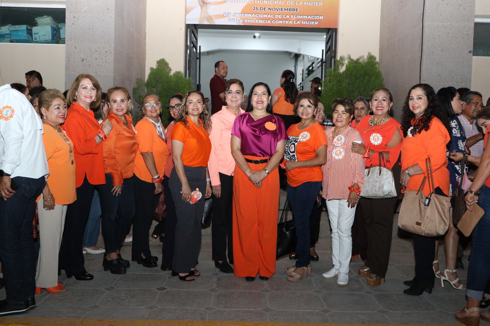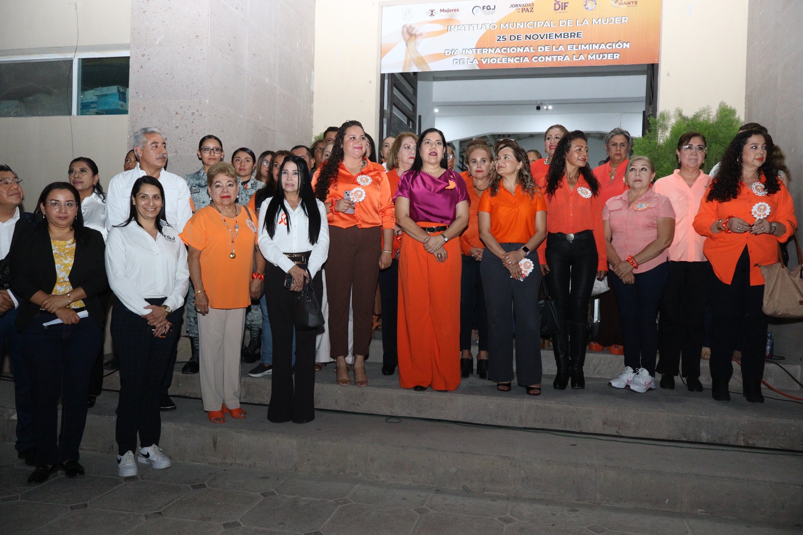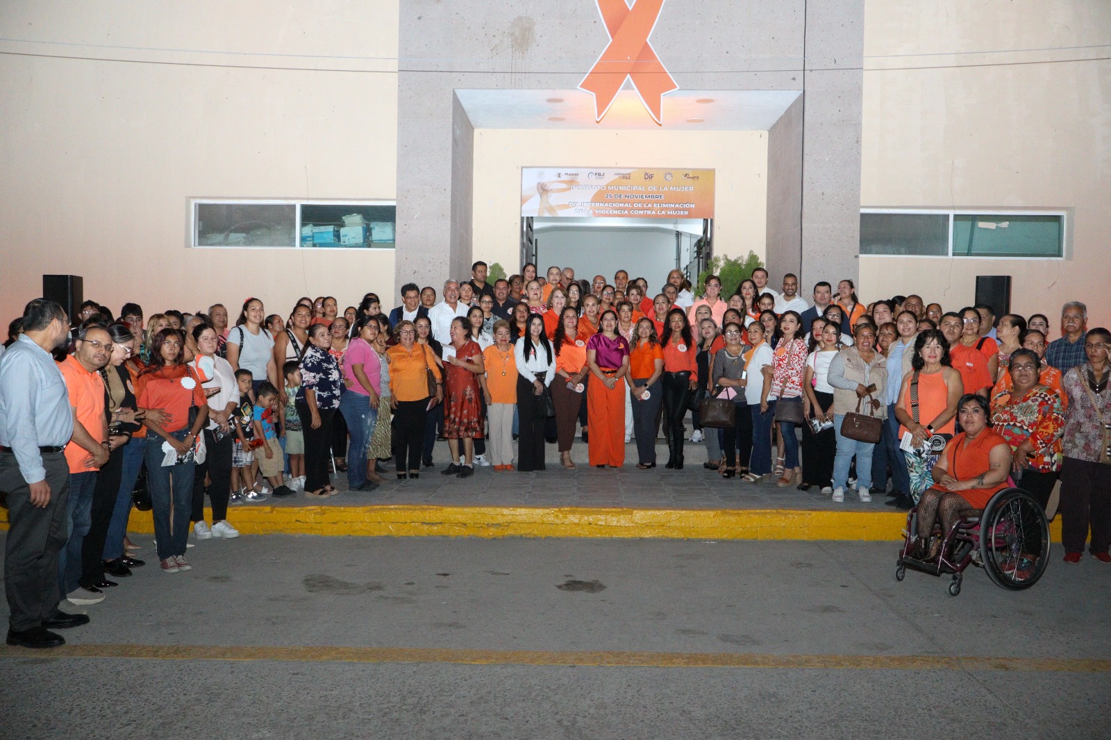 integrantes de la sociedad civil, el acto culminó con el encendido de la Presidencia Municipal en color naranja, donde le acompañaron hombres y mujeres que se unieron a la lucha contra la violencia de género.
