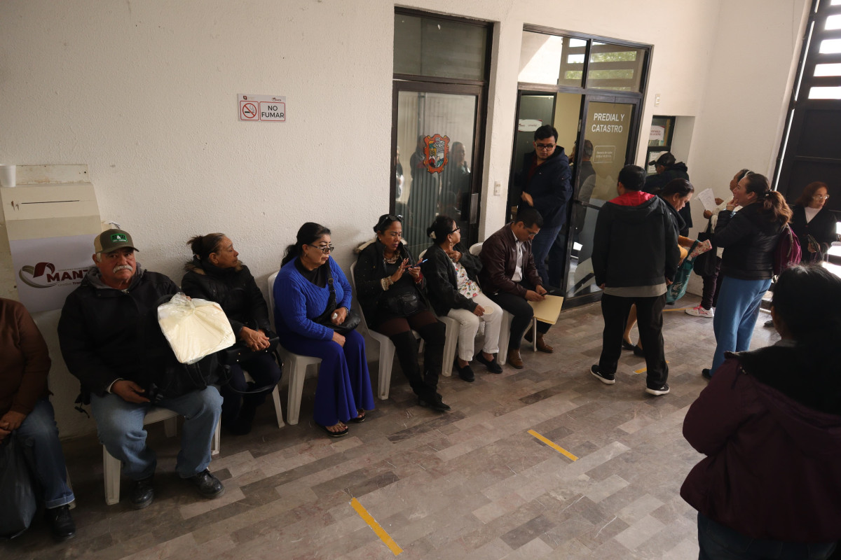 Contribuyentes de todas las edades acuden a realizar el pago de impuestos, gozando de los beneficios que, aprobados por el cabildo durante el mes de enero, siendo un 15 por ciento de descuento en todos los pagos puntuales y un 50% para pensionados, jubilados y personas de la tercera edad; en promedio, diariamente se atienden a 700 personas propietarias de predios rústicos y urbanos.