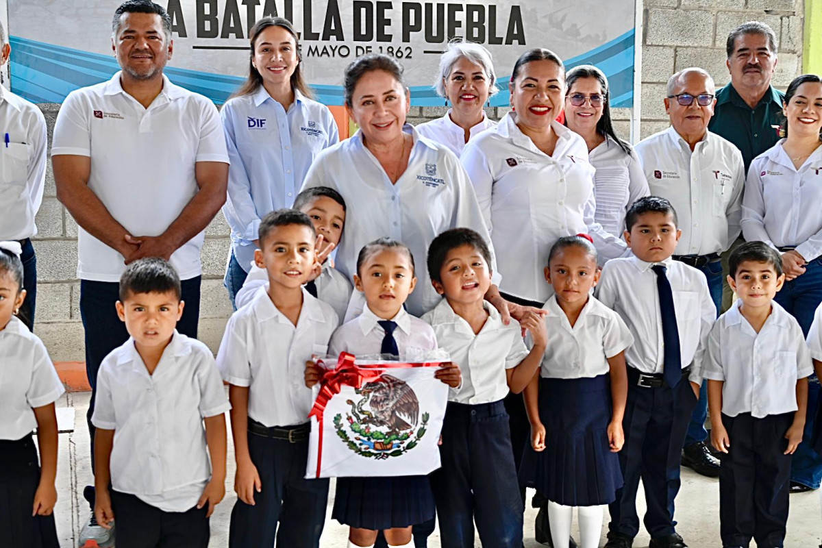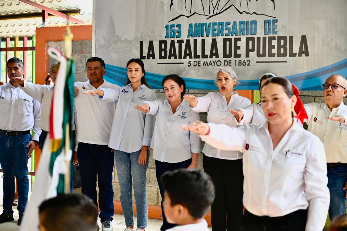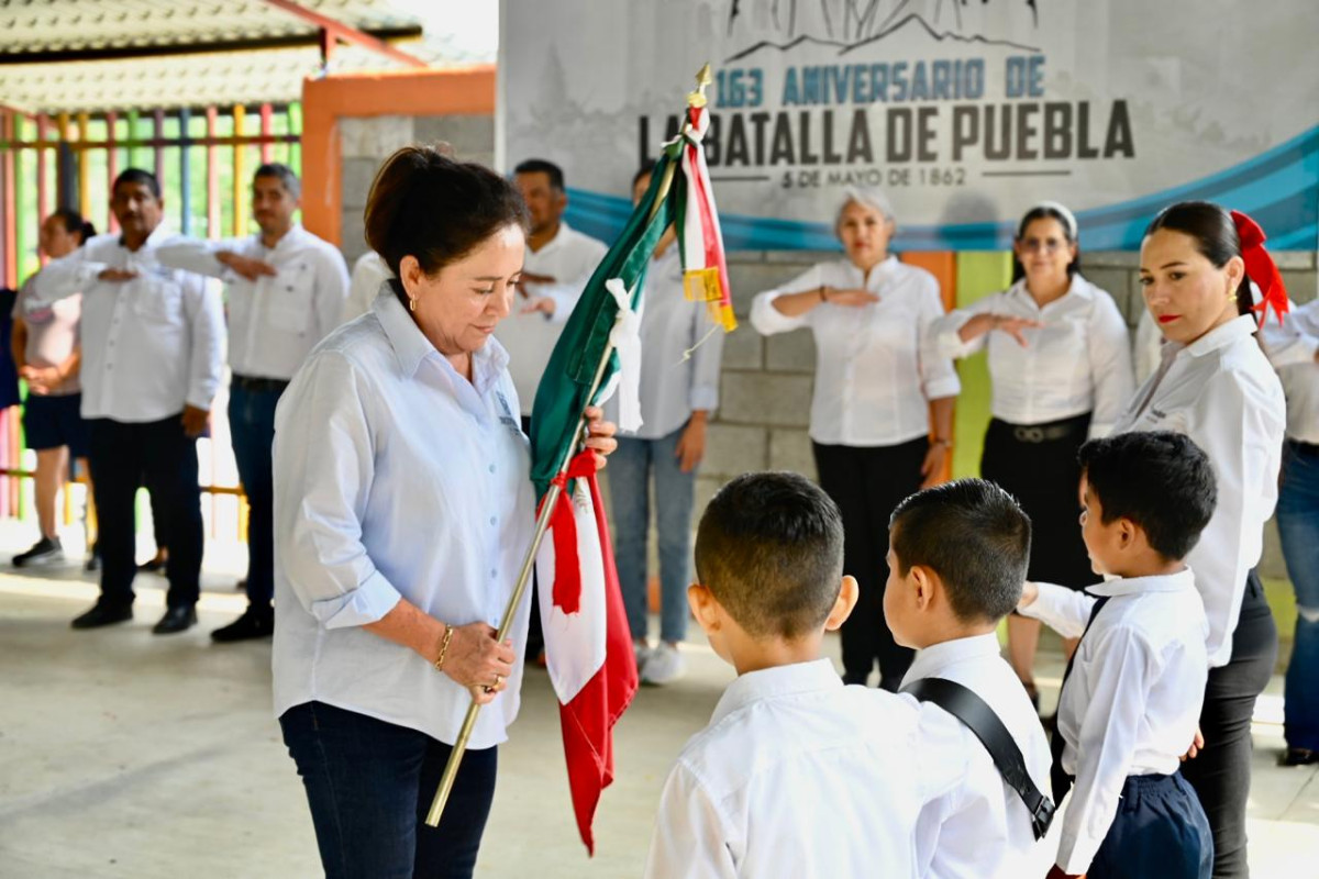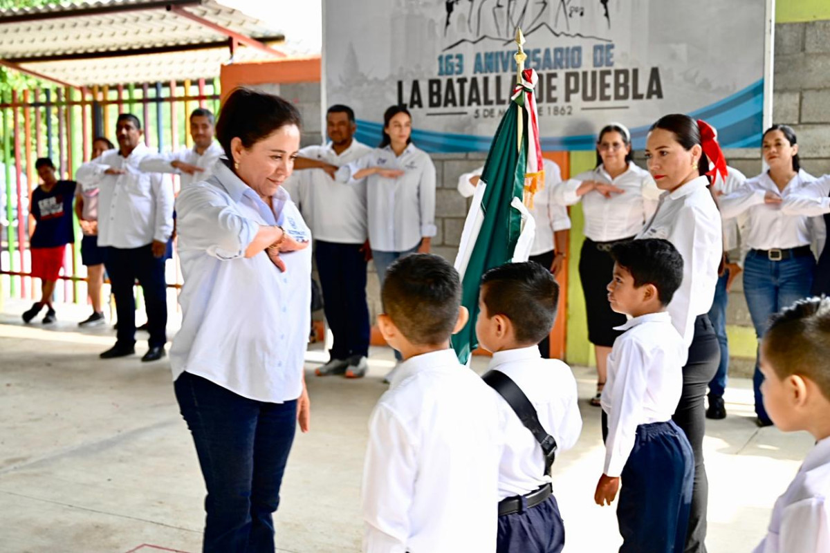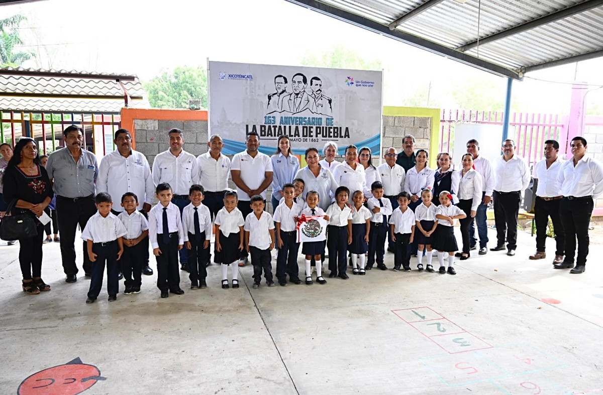 Xicotencatl ,Tam.-Con motivo del aniversario de la Batalla de Puebla, la presidenta municipal de Xicoténcatl, Mariela López Sosa, encabezó una significativa ceremonia cívica en el Jardín de Niños Ovidio Decroly, del Núcleo de Casas y Población Agraria (N.C.P.A.) Emiliano Zapata, reafirmando su compromiso con los valores patrios y la formación cívica desde la infancia.