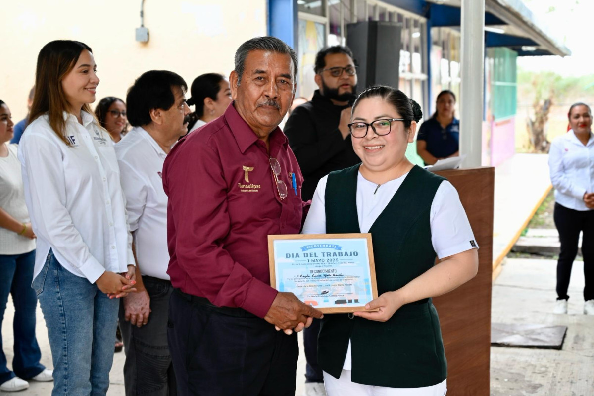 El evento continuó con un acto cívico en el plantel, donde se rindieron honores al escudo de Tamaulipas y a la Bandera de México, haciendo también entrega de reconocimientos al personal educativo y obreros con más antigüedad.en un ambiente lleno de respeto y espíritu patriótico.