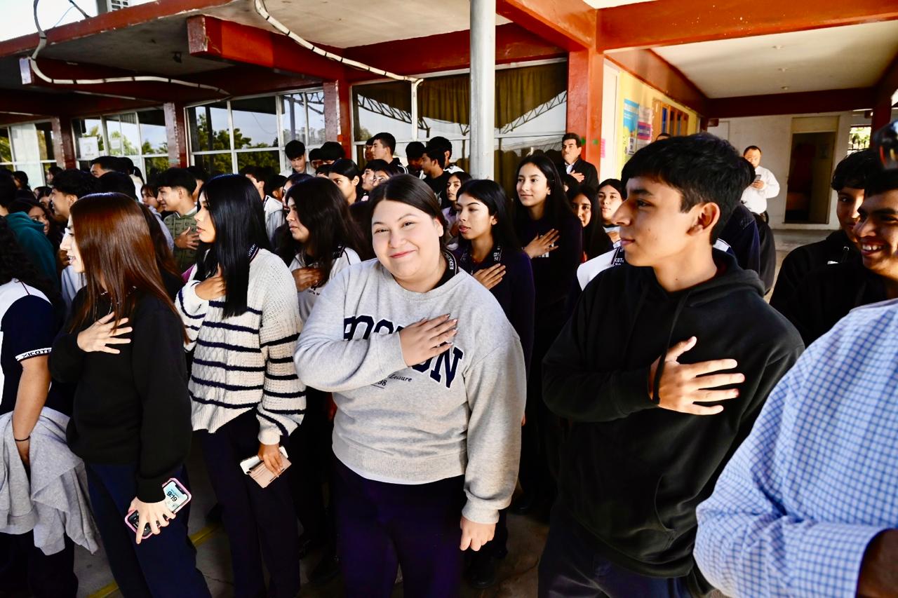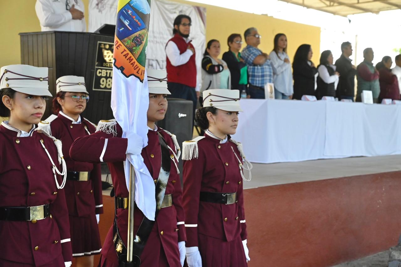 Xicotencatl,Tam.-La presidenta municipal de Xicoténcatl, Mariela López Sosa, encabezó el arranque oficial del nuevo semestre en el CBTis No. 98, reafirmando el firme compromiso del Gobierno Municipal con la educación y el trabajo coordinado con la comunidad escolar.
