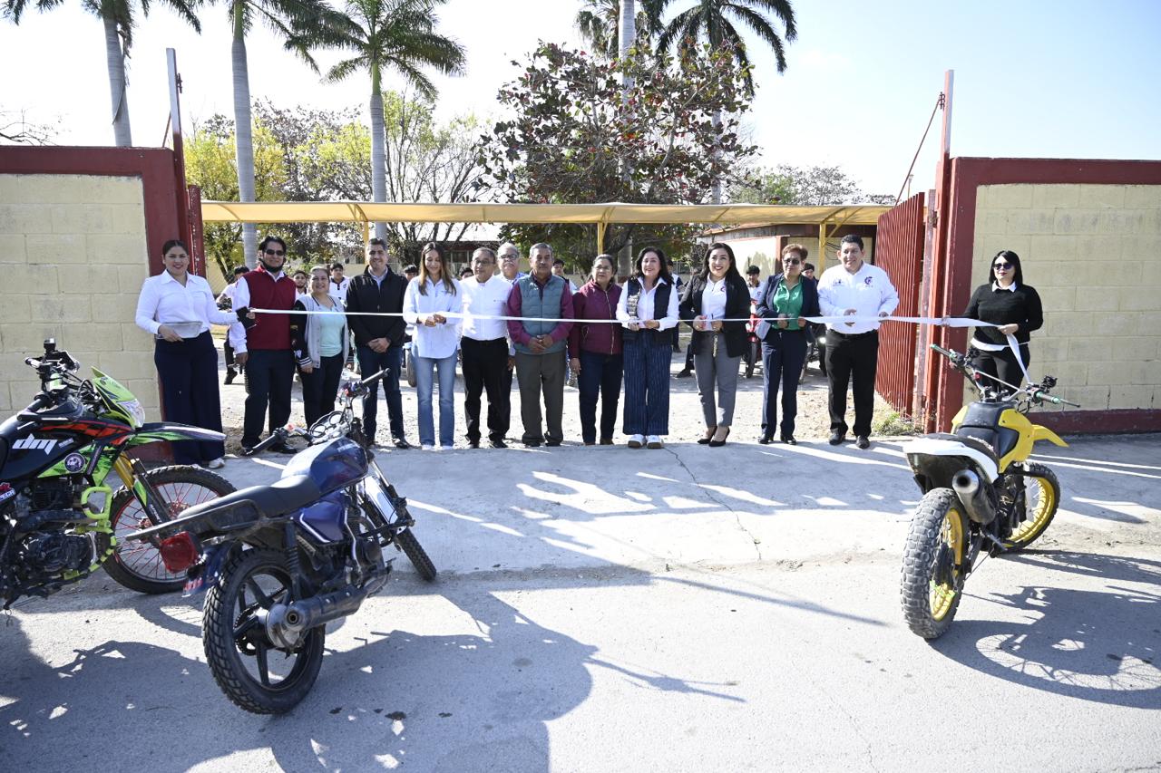 Como parte de las acciones para fortalecer la infraestructura del plantel, se llevó a cabo el corte de listón del nuevo estacionamiento para motocicletas , espacio que contará con malla sombra proporcionada por el Gobierno Municipal, brindando mayor comodidad y seguridad a las y los estudiantes.