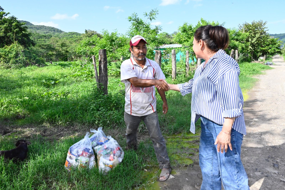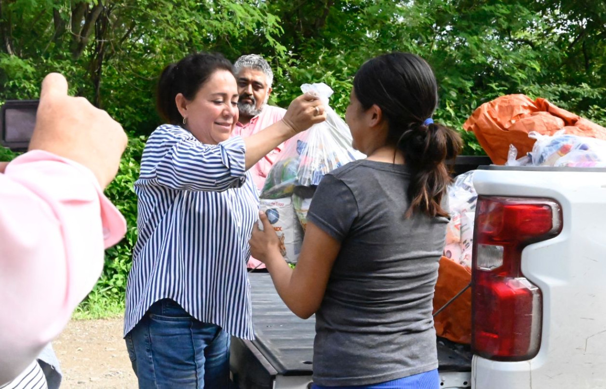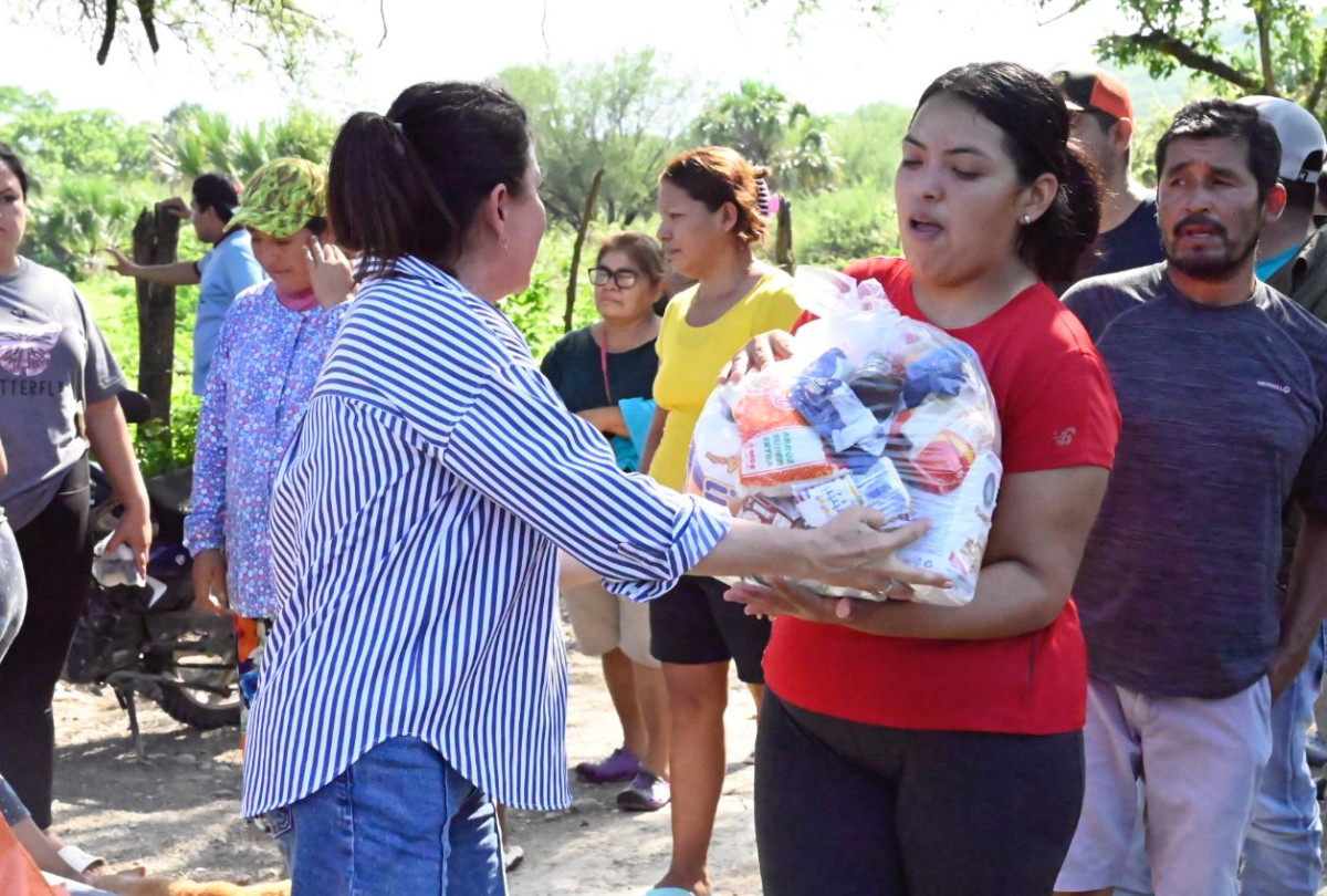 Xicoténcatl, Tam.— En su segundo día de recorridos por las comunidades afectadas por las intensas lluvias derivadas de la tormenta tropical Barry, la presidenta municipal Mariela López Sosa encabezó la entrega de despensas a familias damnificadas en distintas zonas del municipio.