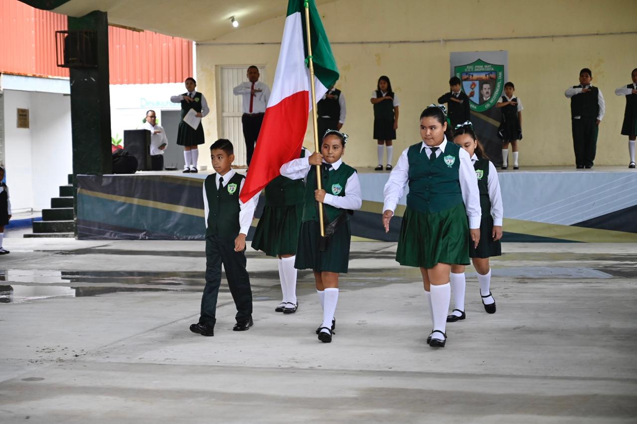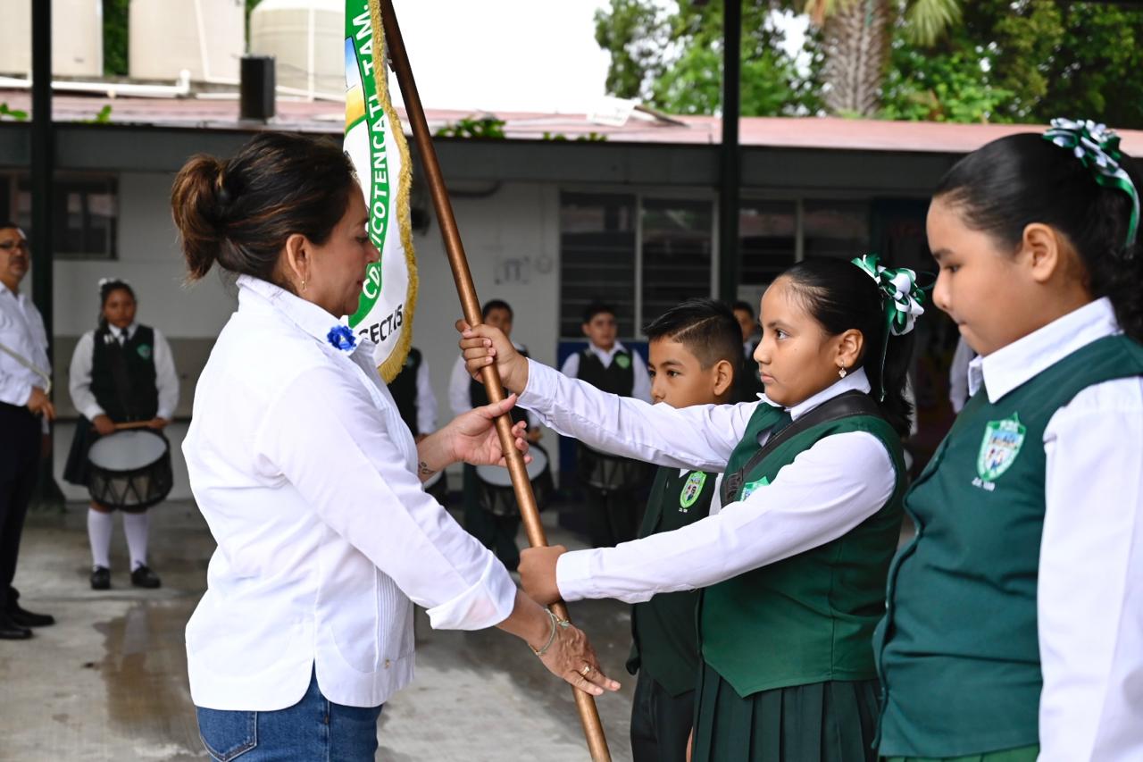 Xicoténcatl, Tam.- Mariela López Sosa, presidenta municipal, inauguró la rehabilitación de la plaza cívica de la Escuela Primaria Expropiación Petrolera, dirigida por la Mtra. María Dorabelia Reyes Enríquez.