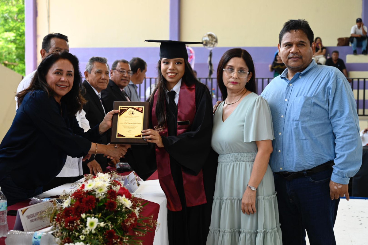 “Es un honor ser madrina de esta generación; hoy celebramos su esfuerzo, su constancia y el futuro brillante que les espera. Sigan soñando en grande”, expresó López Sosa ante estudiantes, docentes y familias reunidas en el acto.