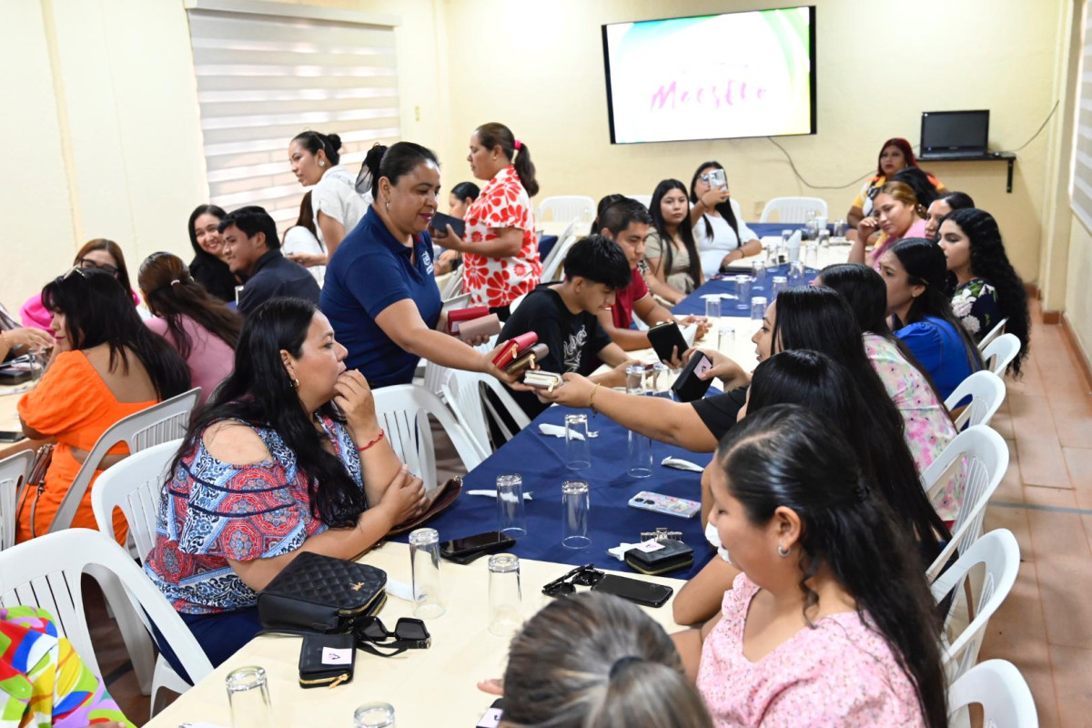 La celebración tuvo lugar en la Presidencia Municipal, donde se ofreció un almuerzo en honor a los docentes. Como parte del evento, se realizó una rifa de obsequios que incluyó joyería y carteras, y se propició un espacio de diálogo para compartir experiencias educativas.