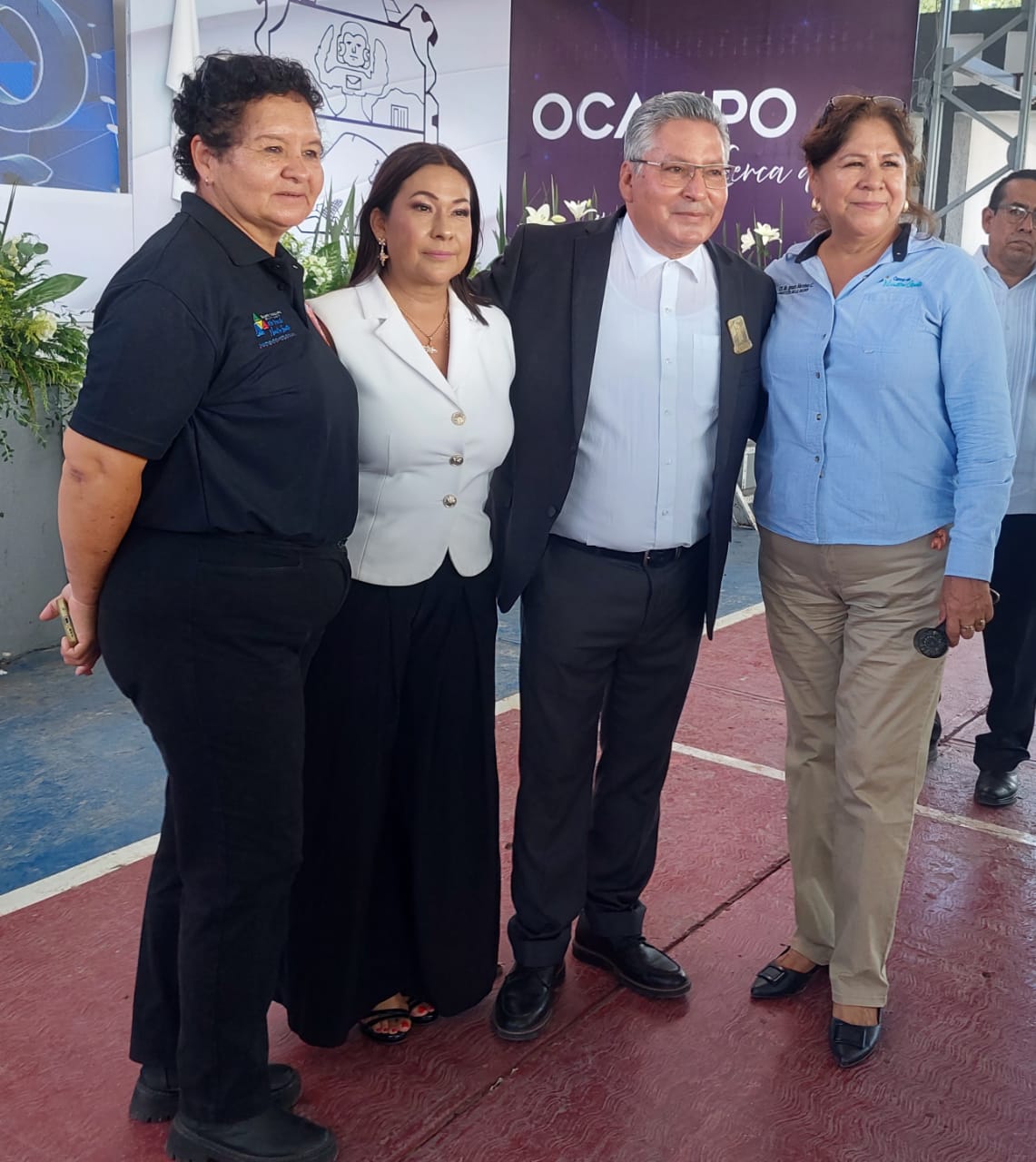 En representación del gobernador Américo Villarreal Anaya, asistió el secretario de Finanzas del Estado, Jesús Lavín Verástegui, quien felicitó al alcalde y a su esposa, Martha Uresti de Budarth, por los resultados presentados en este primer año de gobierno, reconociendo su dedicación a favor de las familias ocampenses.