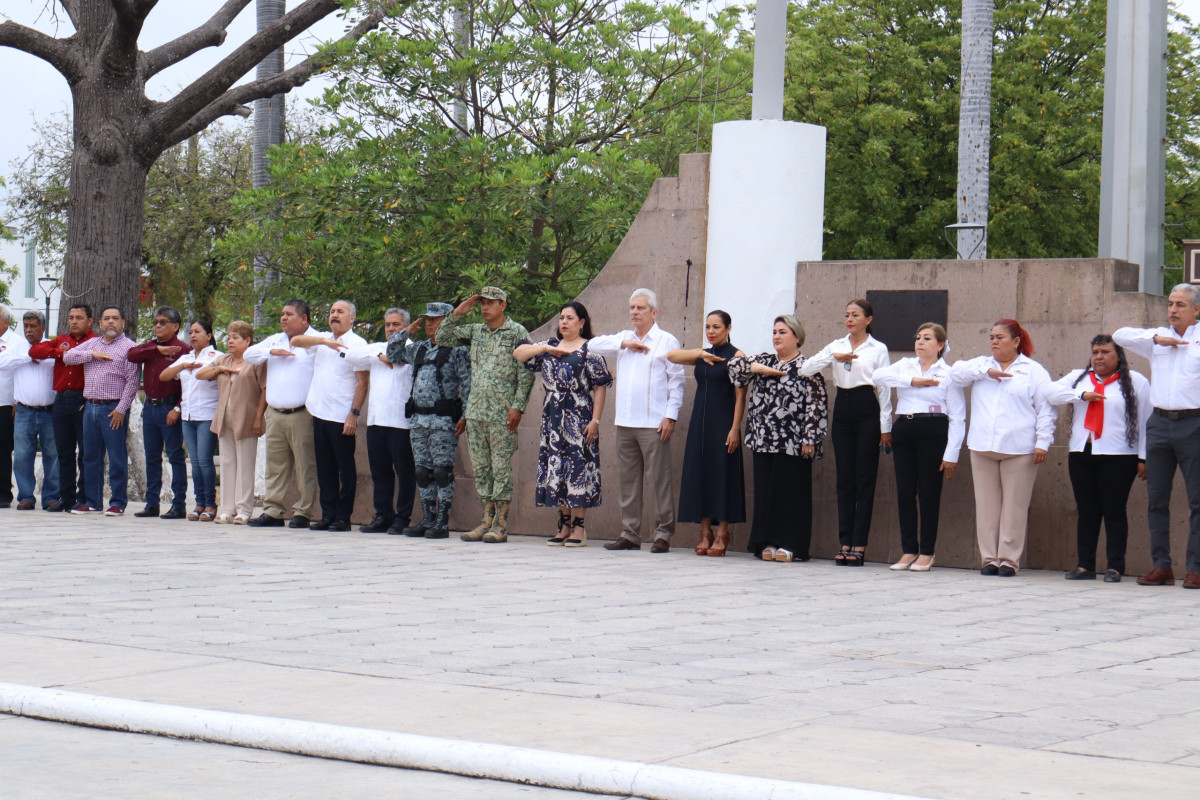 La Presidenta Municipal Patty Chío encabezó la ceremonia de honores, a la que asistieron : diputados locales de la sexagésima sexta legislatura, integrantes del cabildo, funcionarios municipales y del estado, respetables logias masónicas así como estudiantes de educación básica.