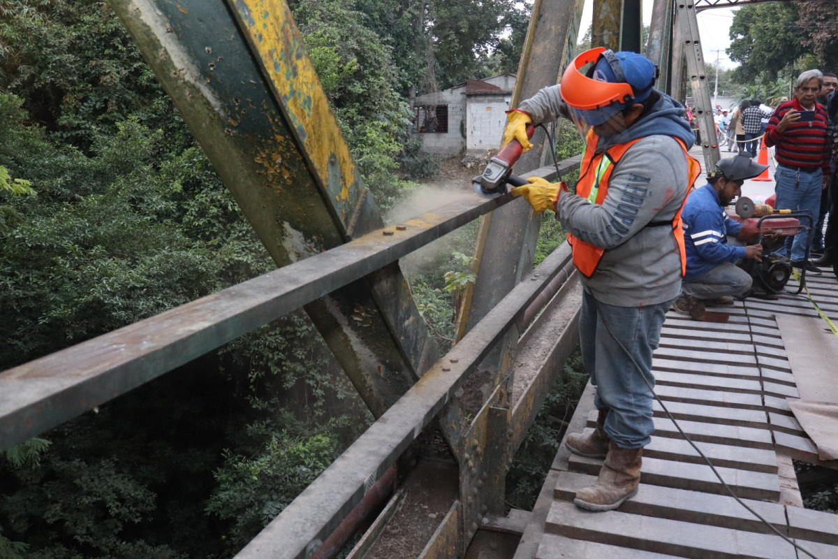 Después de análisis y diagnóstico previo y las m¿evidentes condiciones físicas que se observaban desde hace algunos meses en el puente , se puso en marcha la obra para la rehabilitación de esta vía de acceso, solicitada por un gran número de familias; al evento acudió la Presidenta Municipal Patty Chío.
