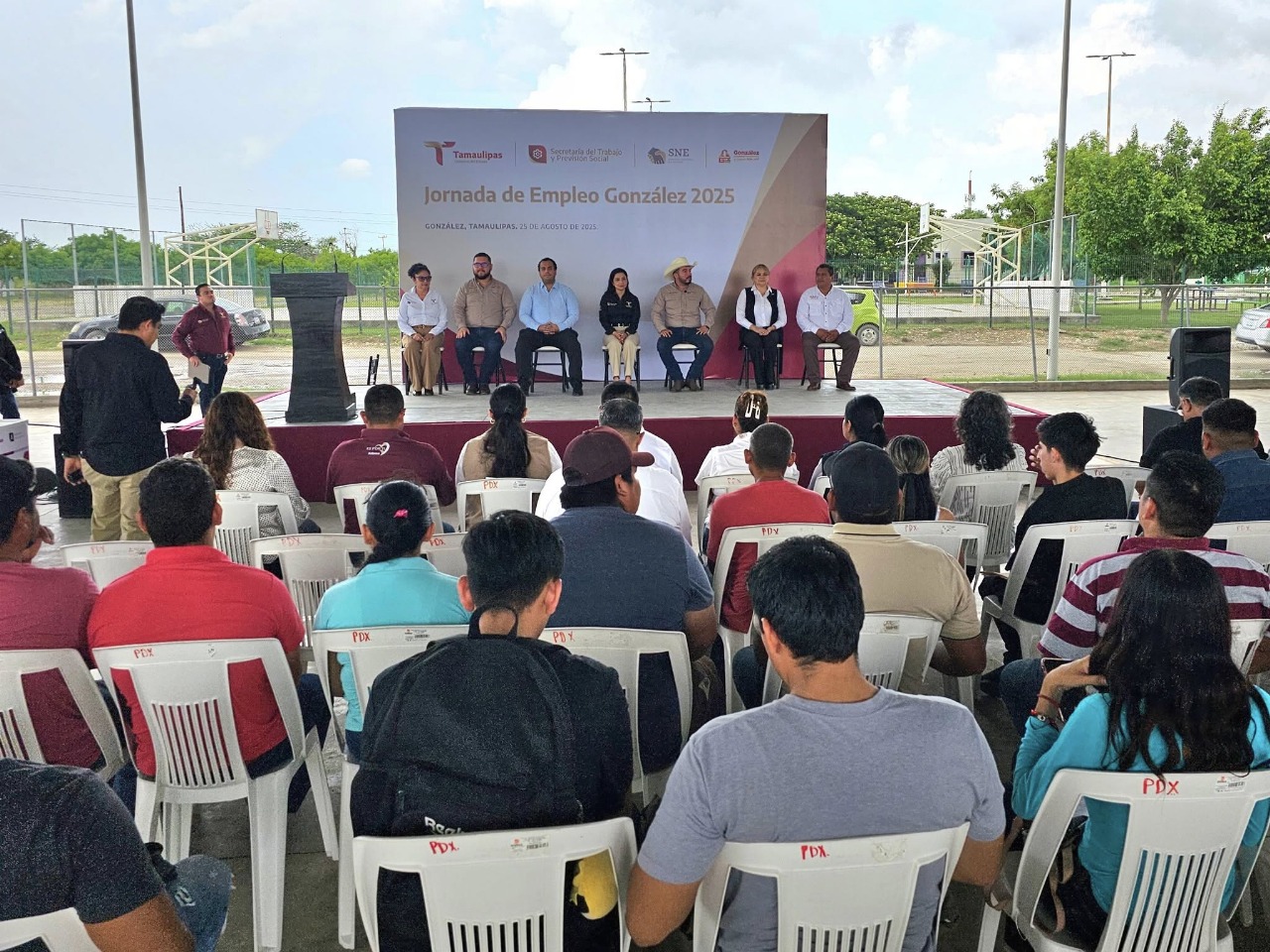 González, Tamaulipas, 25 de agosto de 2025 – En una acción coordinada entre el Gobierno de Tamaulipas y el Gobierno Municipal, se llevó a cabo la Jornada de Empleo González 2025 en la Unidad Deportiva de Villa Manuel. El evento, organizado por la Secretaría del Trabajo y Previsión Social a través del Servicio Nacional de Empleo, ofreció más de 100 vacantes con rangos salariales que inician en $8,480.00 pesos mensuales y hasta los 26,176.75 pesos.