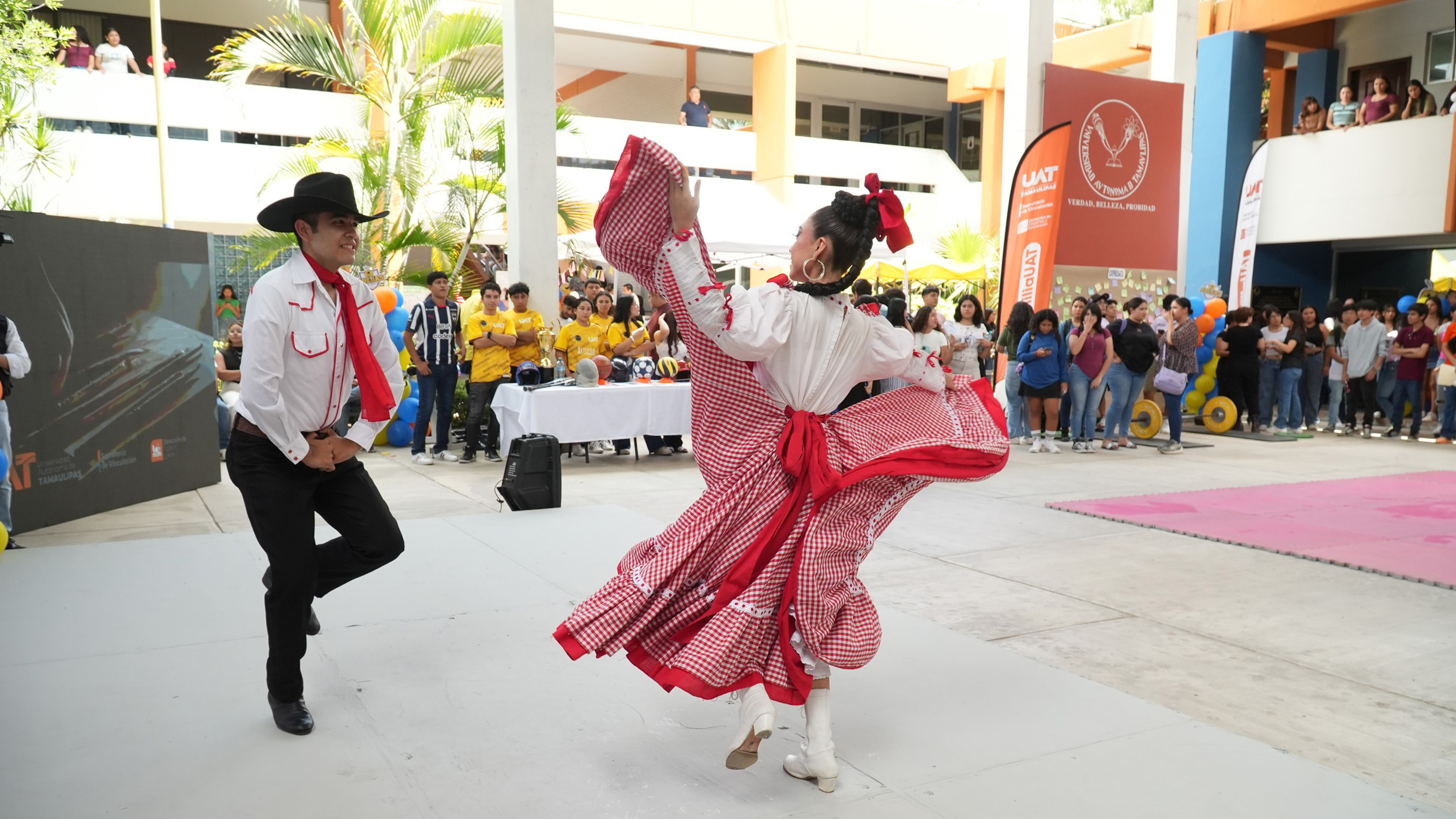 De igual forma, se ofrece una muestra de los talleres y grupos artísticos como el ballet folclórico, teatro y pantomima, y, en otros espacios, las facultades y unidades académicas han instalado módulos informativos acerca de los diversos programas y beneficios que la UAT brinda a todo su alumnado, como es el Seguro Facultativo IMSS, bibliotecas, programas de becas y estímulos educativos, programas de movilidad y de intercambio estudiantil, entre otros.