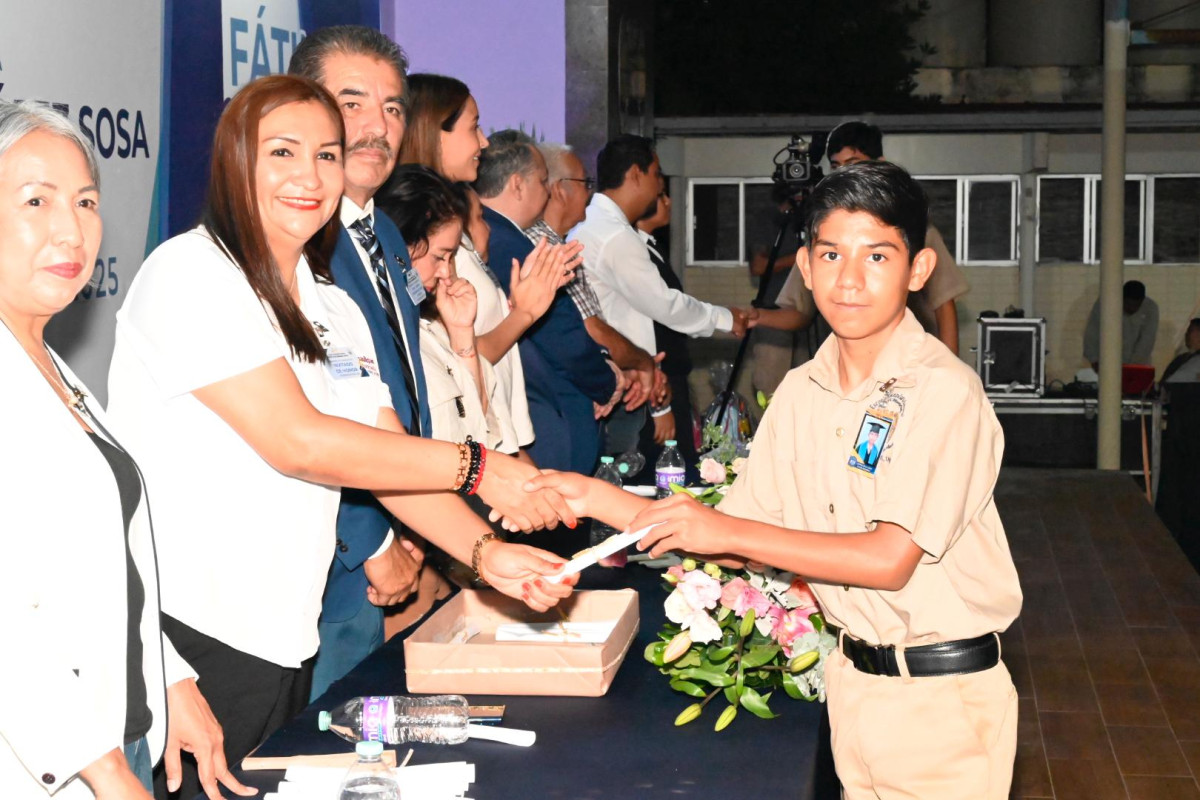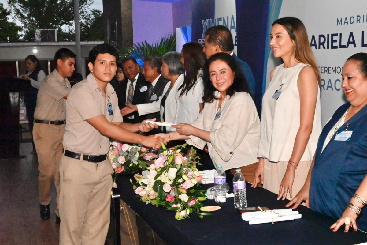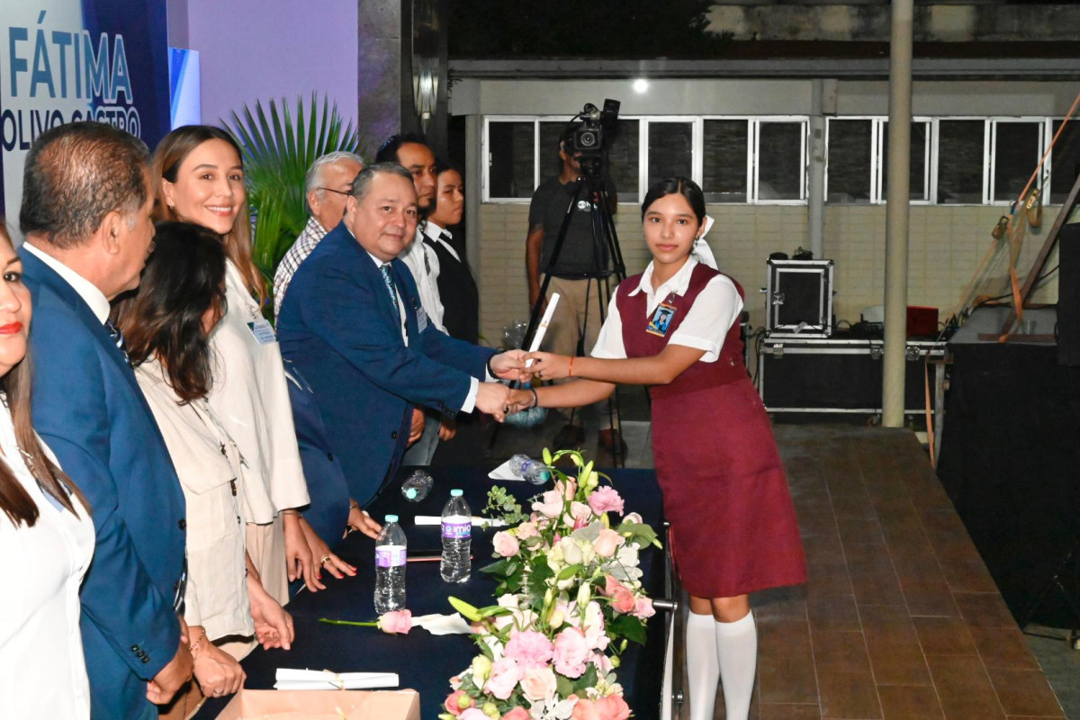 Durante la ceremonia, la alcaldesa estuvo acompañada por la presidenta del Sistema DIF Municipal, Marla García López, compartiendo este significativo momento con estudiantes, docentes y familias.