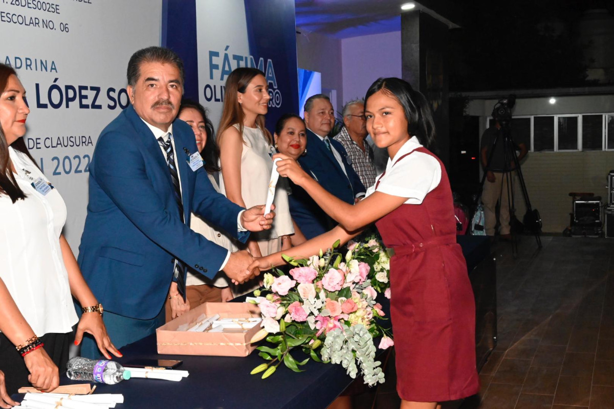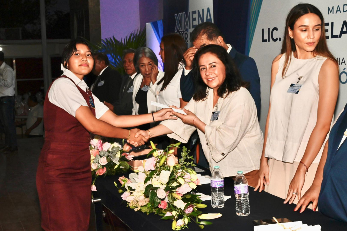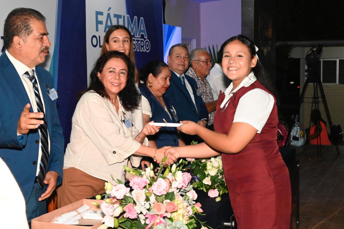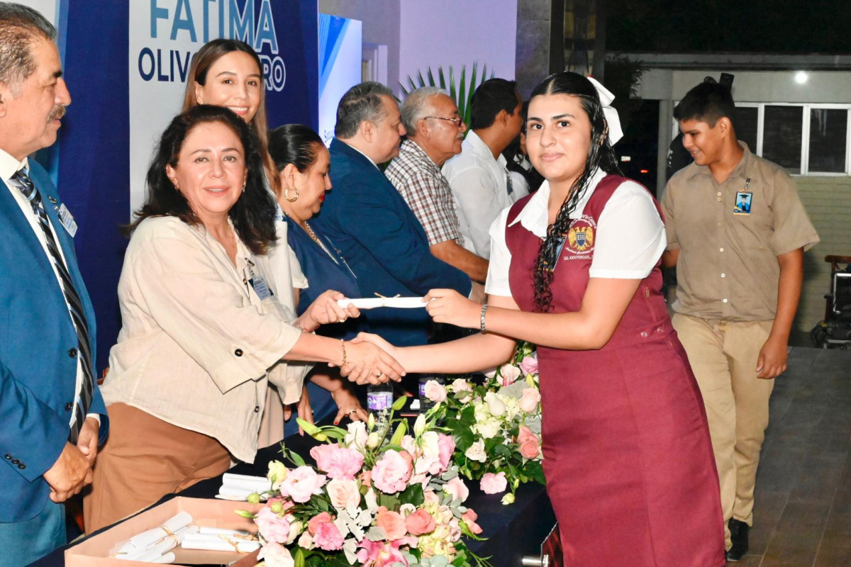 Durante la ceremonia, la alcaldesa estuvo acompañada por la presidenta del Sistema DIF Municipal, Marla García López, compartiendo este significativo momento con estudiantes, docentes y familias.