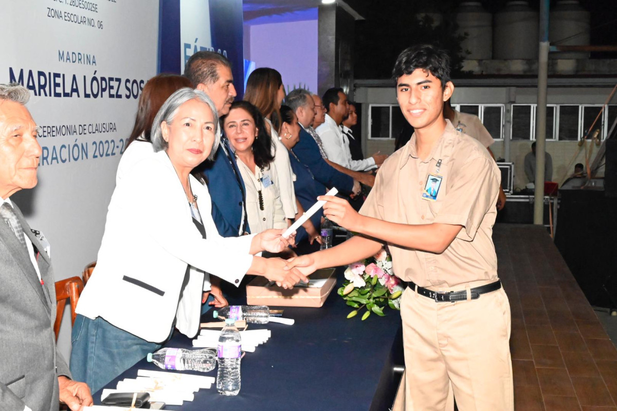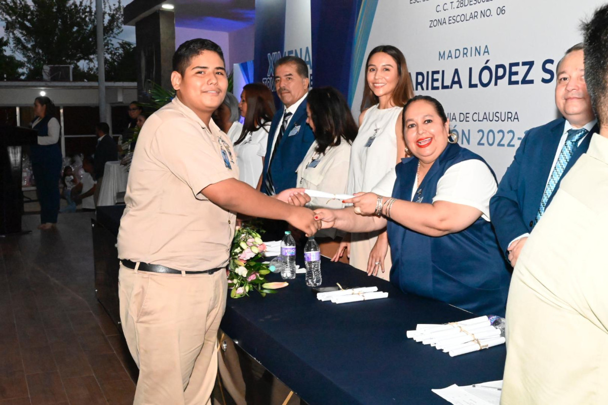 Xicoténcatl, Tam.— En un emotivo acto de graduación, la presidenta municipal Mariela López Sosa fue distinguida como madrina de generación de los alumnos egresados de la Escuela Secundaria General “Pedro José Méndez”, donde refrendó su compromiso con la educación como eje fundamental para el desarrollo del municipio.