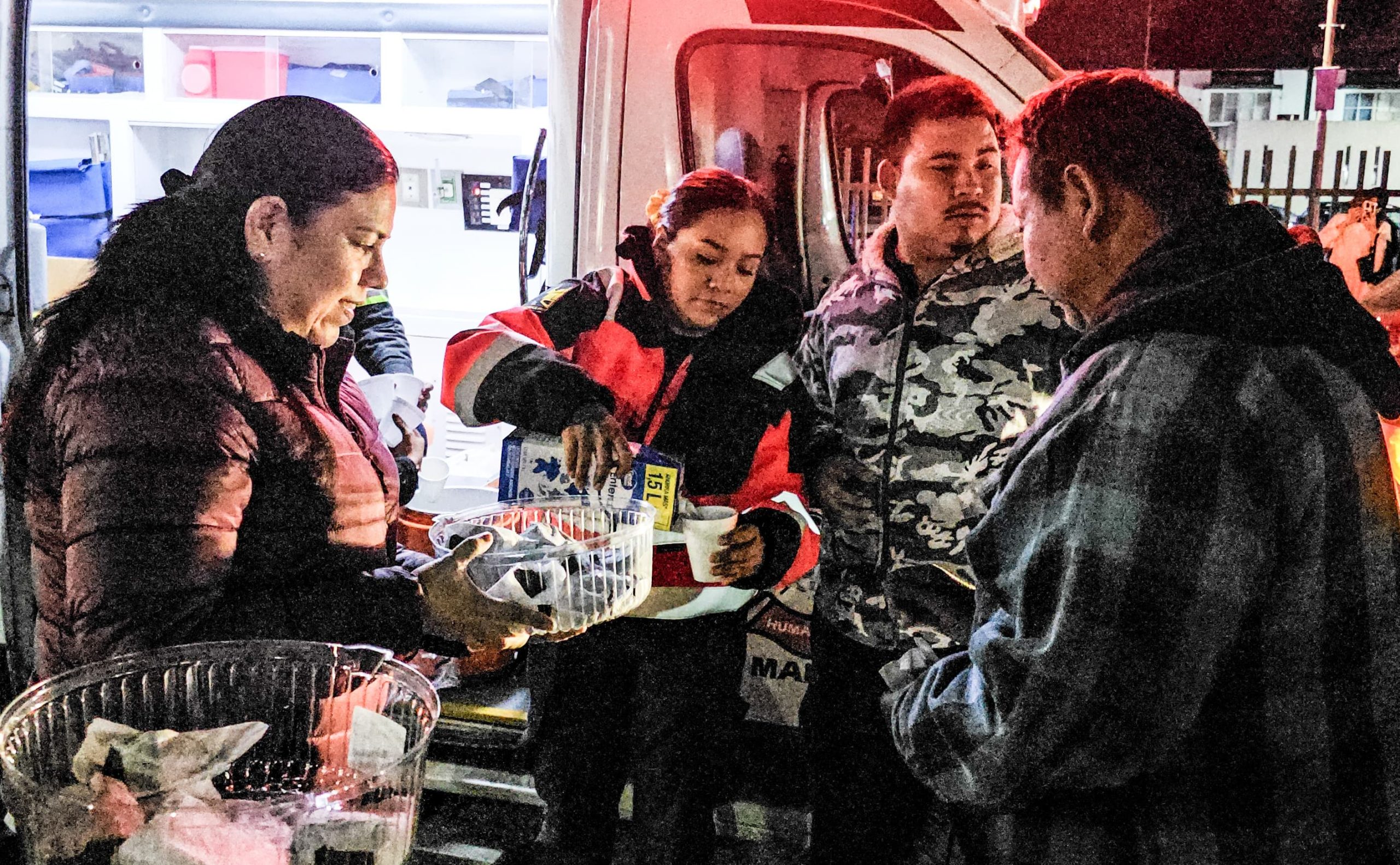 Durante el recorrido, se brindó apoyo directo a personas que, por diversas circunstancias, duermen o permanecen a la intemperie, mediante la entrega de bebidas calientes, alimentos, cobijas y colchonetas, como parte de las acciones para proteger su salud e integridad ante el frío.