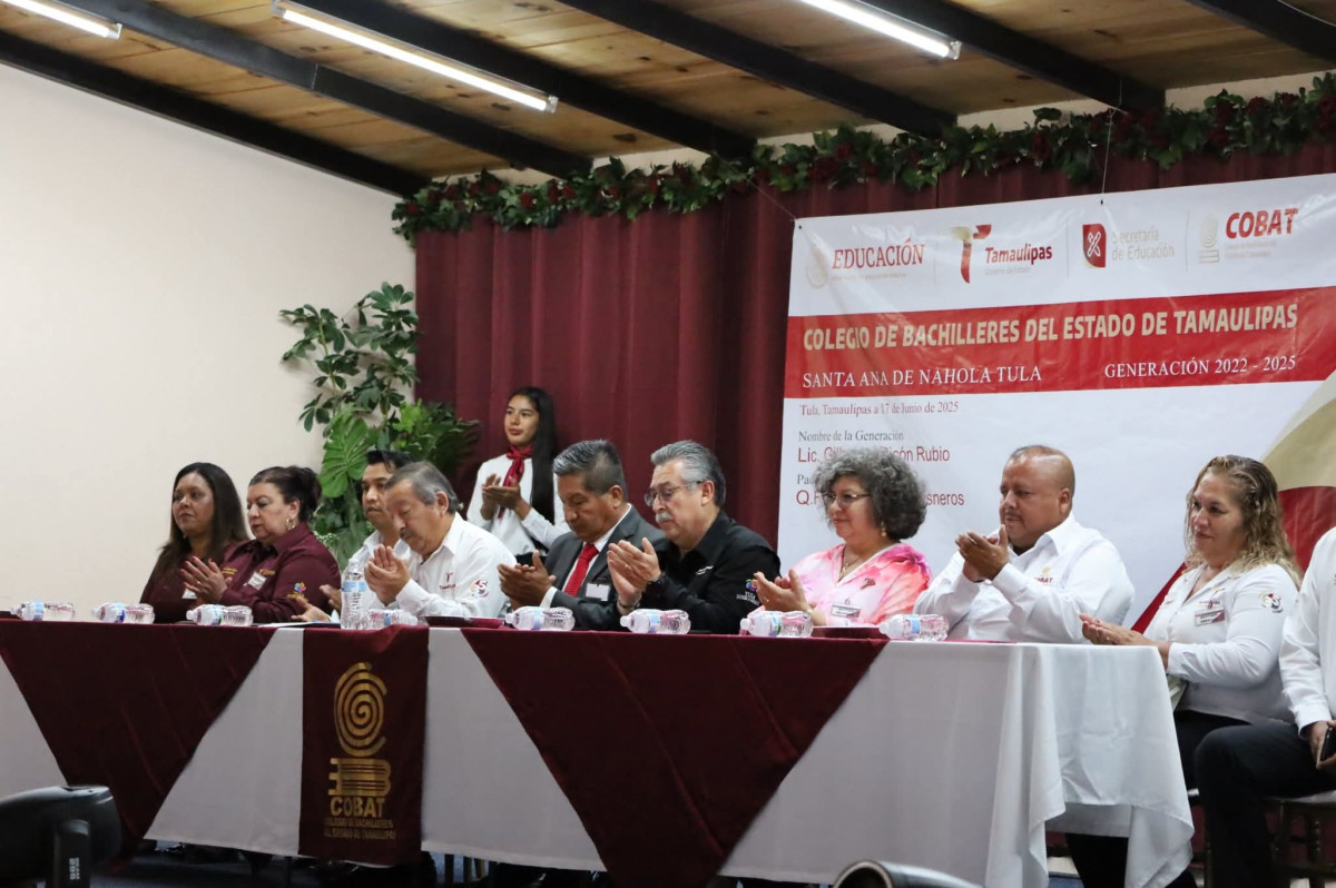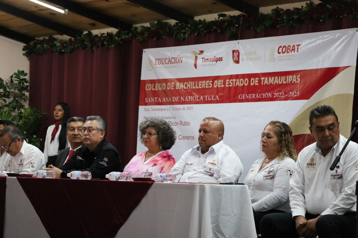Tula,Tam.-Un día inolvidable para la comunidad estudiantil del COBAT Nahola. El presidente municipal, René Lara Cisneros, tuvo el honor de asistir a la emotiva ceremonia de graduación, acompañando a las y los jóvenes que culminaron una etapa crucial en su formación académica.