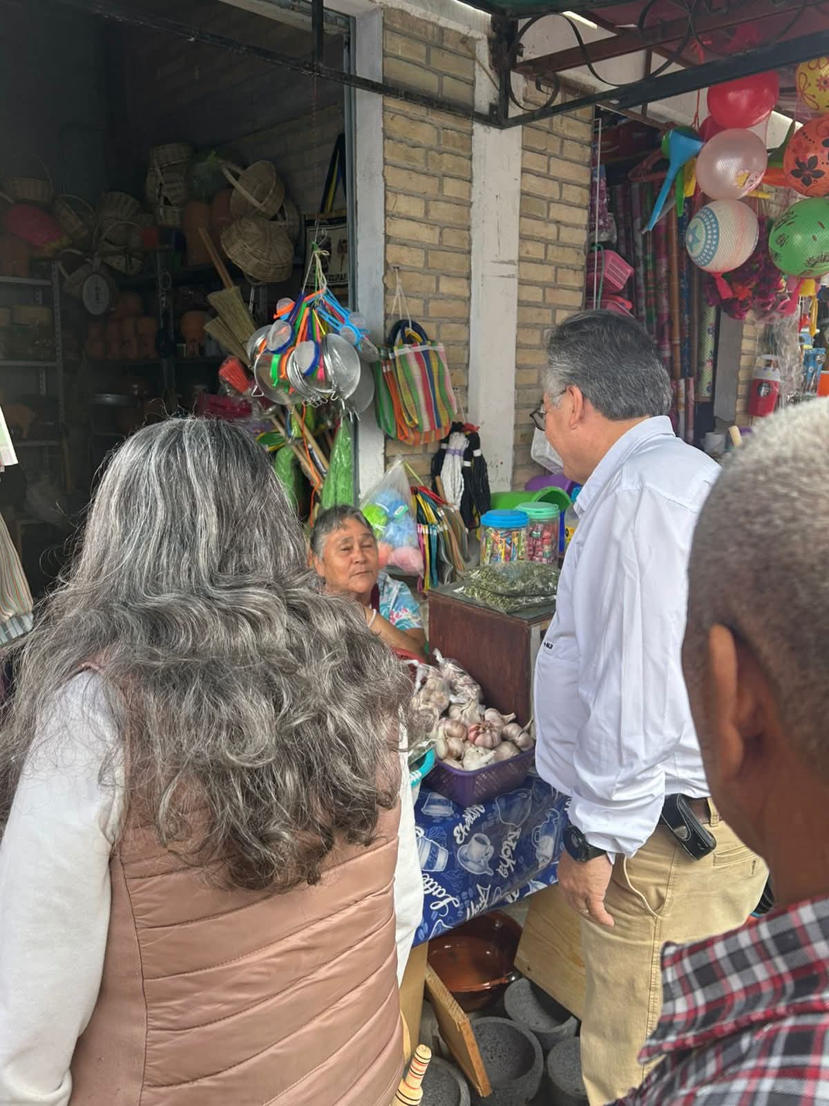 Durante esta visita, escuchó sus inquietudes, atendimos algunas quejas y reafirmando su compromiso de seguir trabajando juntos para mejorar los espacios comunes. Este encuentro tuvo como propósito principal dialogar directamente con las y los comerciantes del mercado ante rumores infundados sobre un supuesto desalojo.