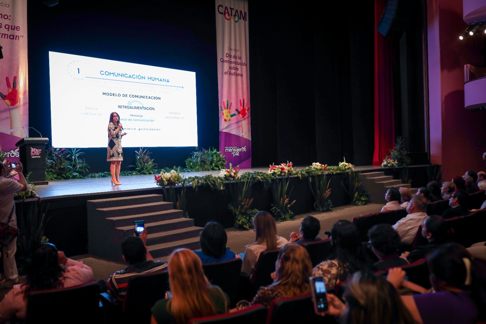 Ciudad Victoria, Tamaulipas.- Para sensibilizar a la comunidad en general, así como fortalecer el conocimiento sobre el autismo y reafirmar el compromiso social de construir entornos más empáticos, accesibles e inclusivos, el Sistema DIF Tamaulipas, que preside la doctora María de Villarreal, llevó a cabo la conferencia “Autismo: Historias que Transforman”, en el marco de la conmemoración del Día de la Concienciación sobre el Autismo y el Mes de la Educación Especial e Inclusiva.