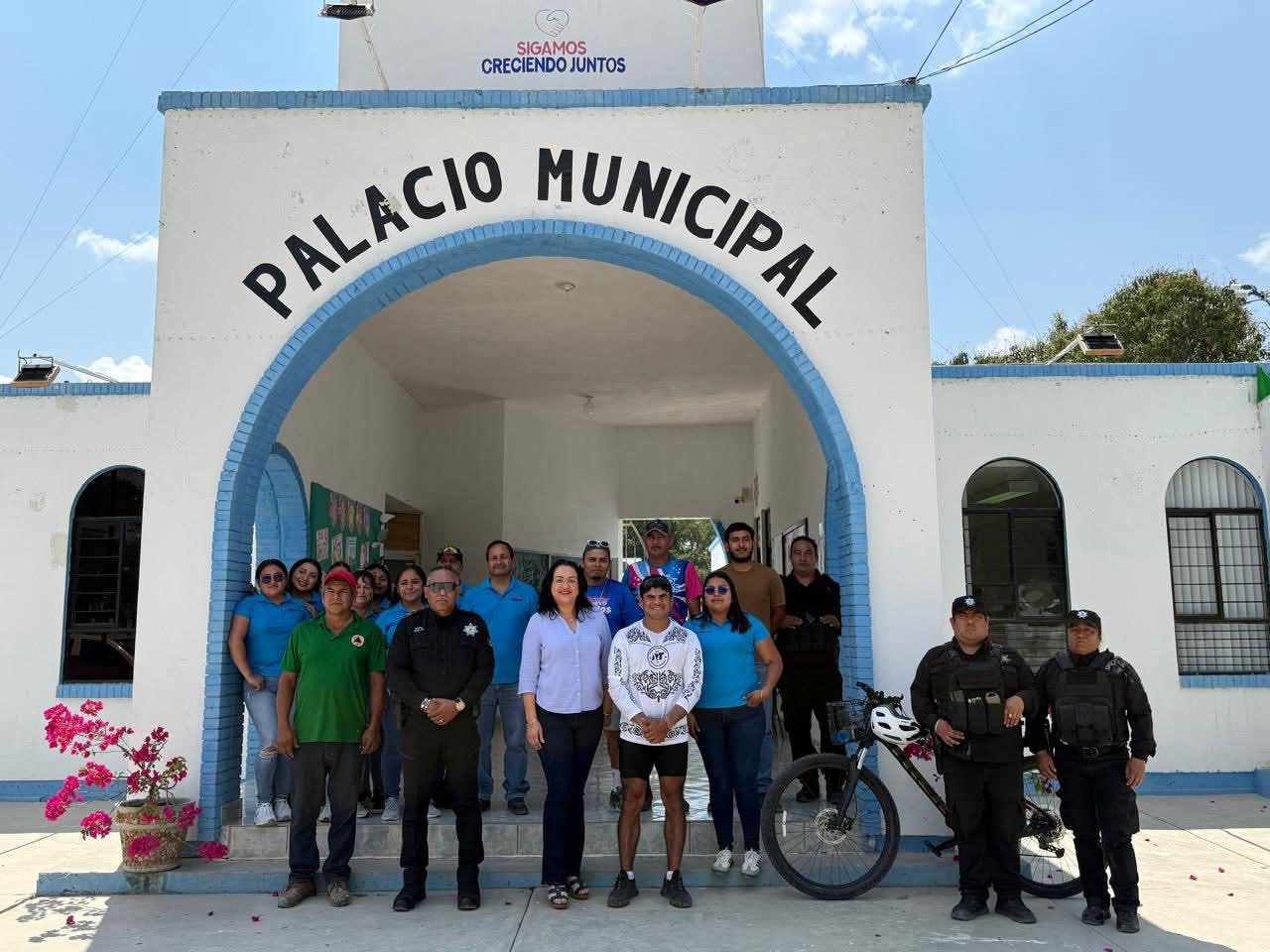 Nuevo Morelos,Tam.-El día de ayer, la alcaldesa, acompañada por personal del Ayuntamiento y elementos de la Guardia Estatal, dio la bienvenida al ciclista de alto rendimiento César Vallejo, quien se encuentra recorriendo cada uno de los municipios del estado como parte de su destacada travesía.