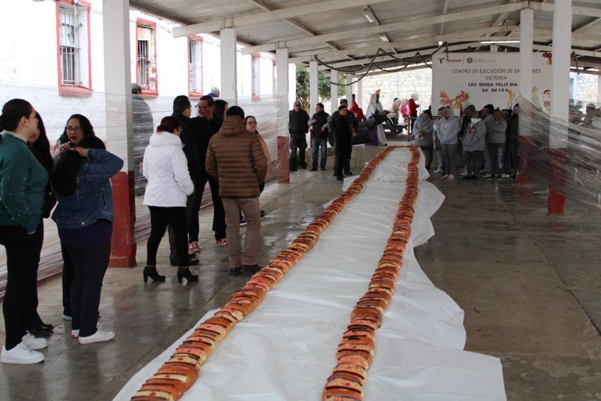 Ciudad Victoria, Tamaulipas.- Con una tradicional Rosca de Reyes de 30 metros de largo, el Centro de Ejecución de Sanciones (CEDES) de Ciudad Victoria celebró esta festividad en la que convivieron Personas Privadas de la Libertad (PPLs), sus familias, personal administrativo y de seguridad que laboran en este centro.