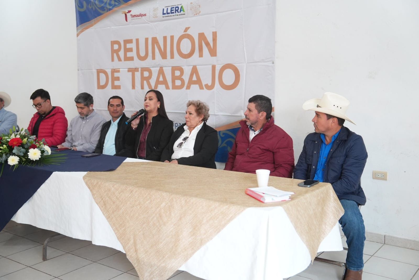 En representación del secretario de Salud, Vicente Joel Hernández Navarro, el jefe del Departamento de Vacunación, Jesús Zárate Torres, y la directora del Distrito de Salud para el Bienestar 1 de Victoria, Zelenney Rodríguez Mendoza, acompañados por el presidente municipal de Llera, Moisés Borjón Olvera, encabezaron el evento protocolario para unificar el trabajo preventivo y la aplicación de biológicos en las zonas rurales y la cabecera municipal.
