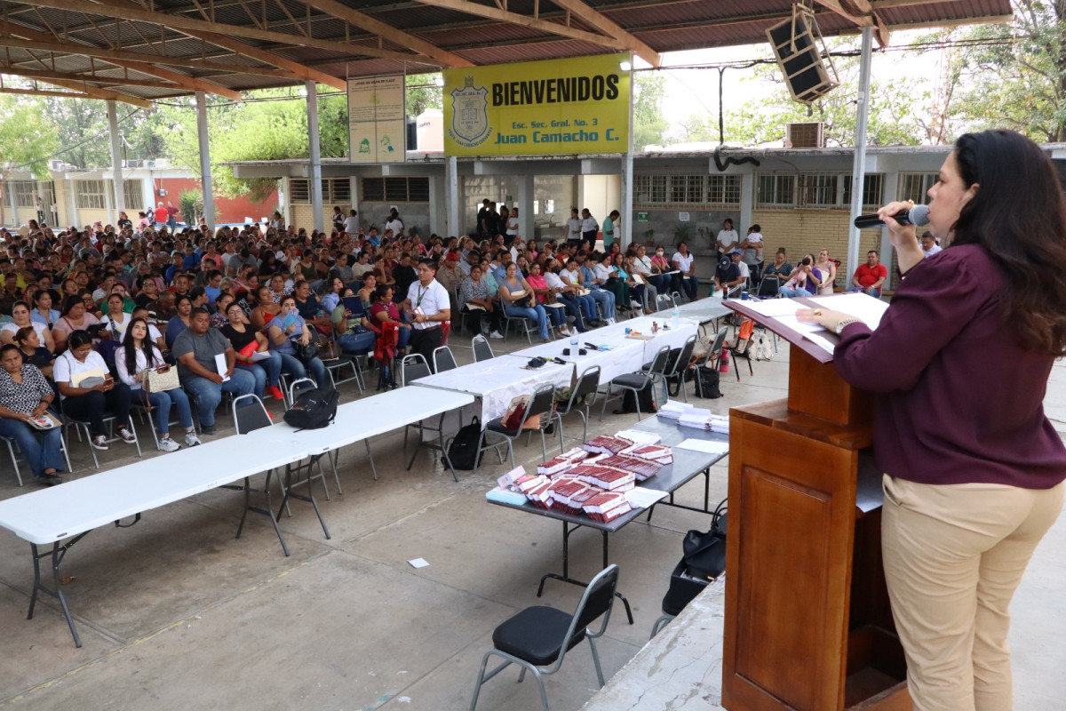 Ante padres de familia y tutores de los alumnos beneficiados con la beca «Rita Cetina», la Presidenta Municipal Patty Chío reconoció el respaldo de la Doctora Claudia Sheinbaum, para apoyar de forma igualitaria e incluyente a todos los alumnos de educación secundaria.