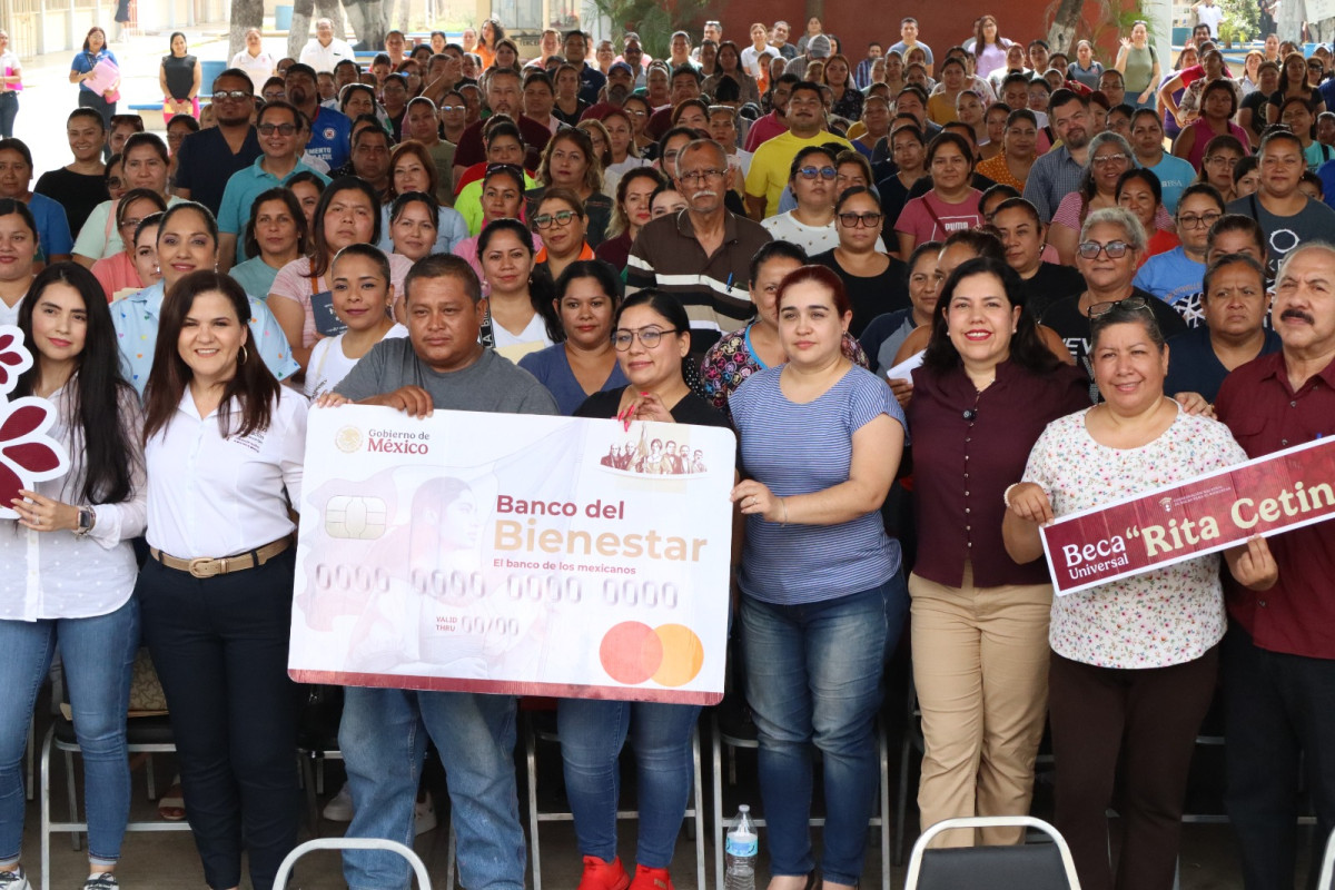 «Es un gusto regresar a esta escuela para dar cumplimiento a una de las promesas de campaña de nuestra PresidentA y a su nombre, hacer entrega de estas tarjetas que en breve tendrán el efectivo que permita apoyar las actividades de sus hijos en las escuelas y que el factor económico ya no sea una limitante para que puedan estudiar» dijo.