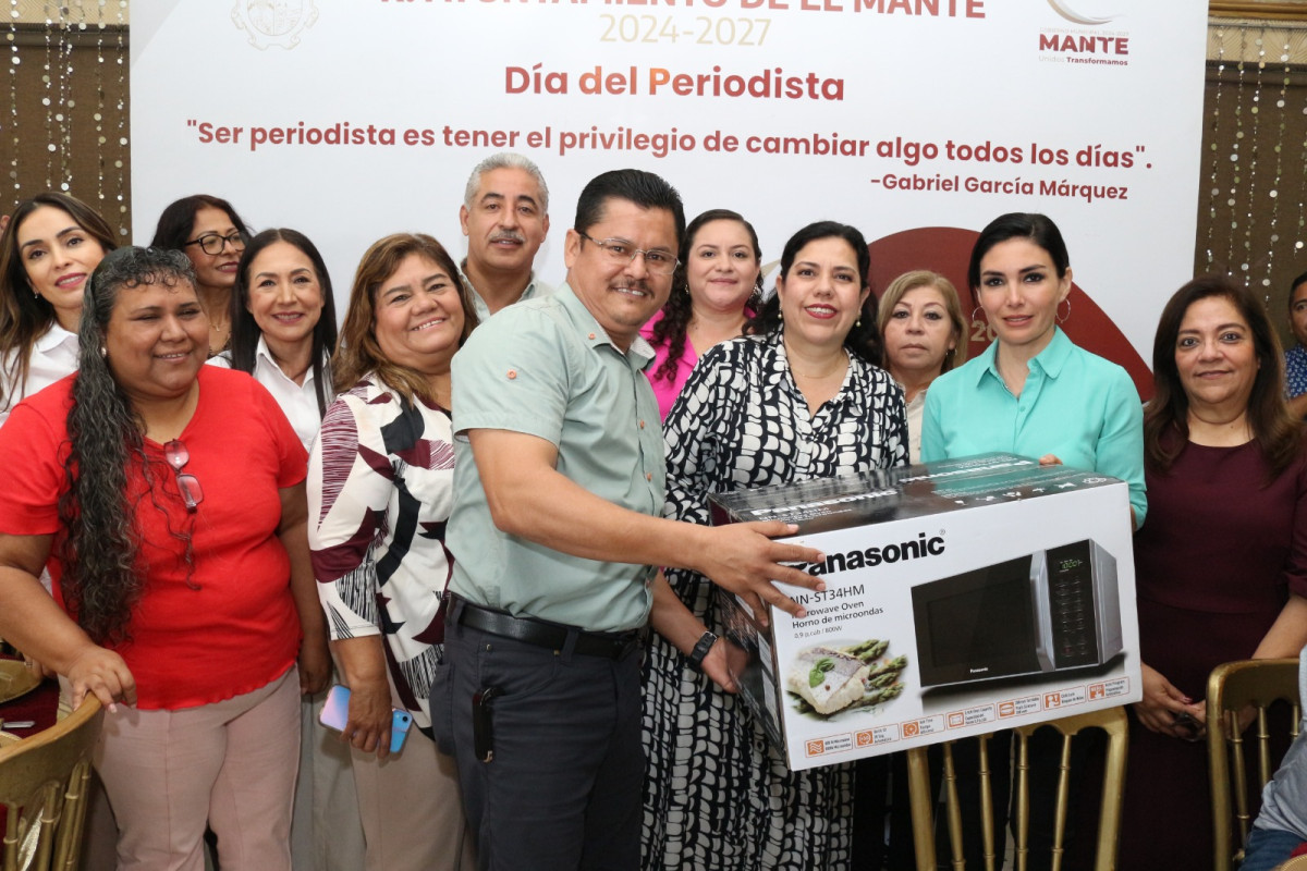Junto a Síndicos y regidores, la Presidenta Municipal Patty Chío sorteo regalos a todos los presentes, deseando continúen en su labor de informar a la ciudadanía y ser aliados estratégicos en la transformación de El Mante.