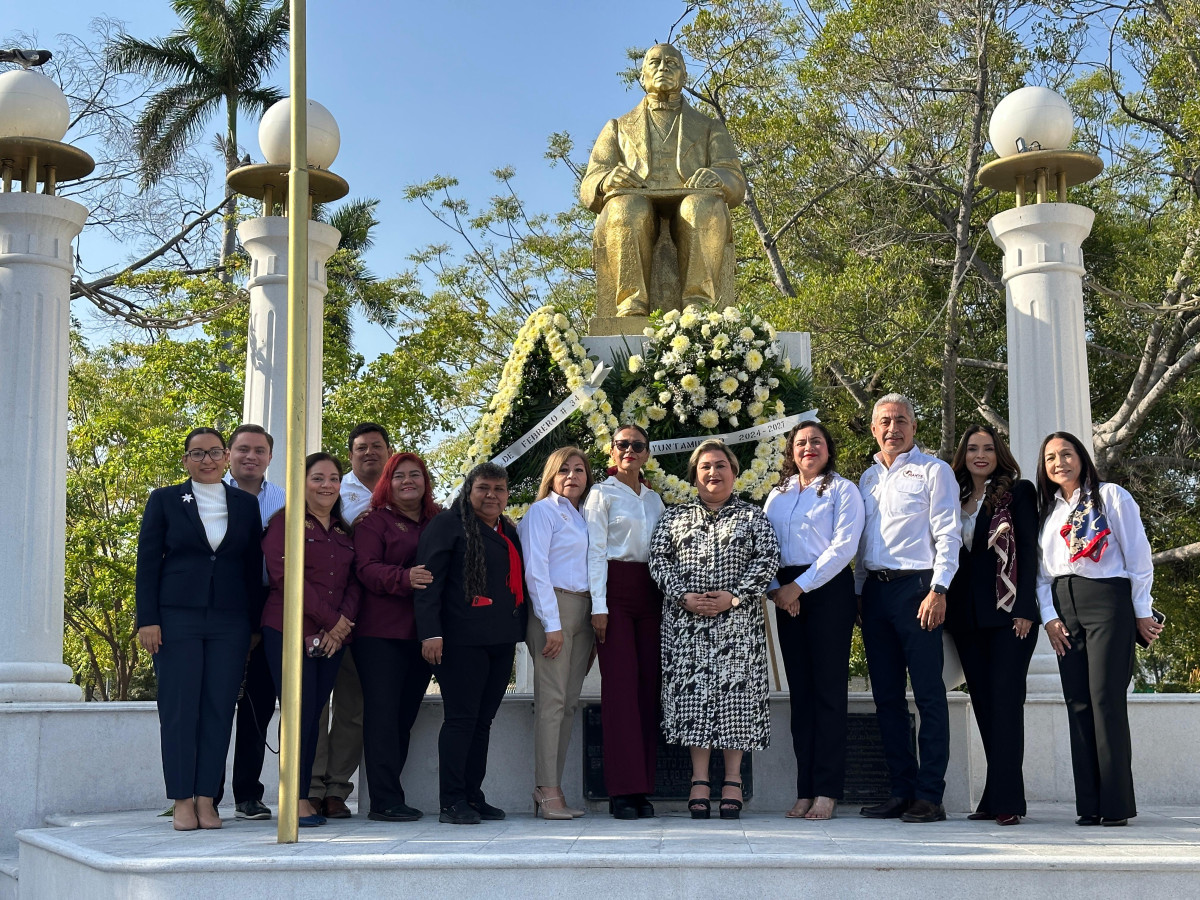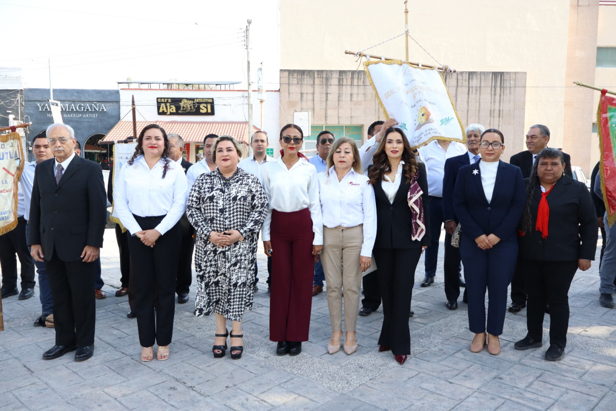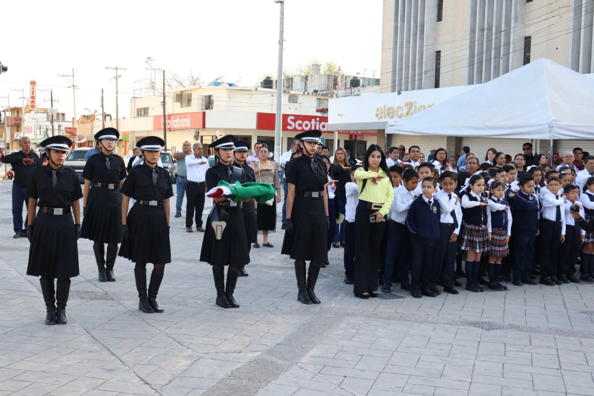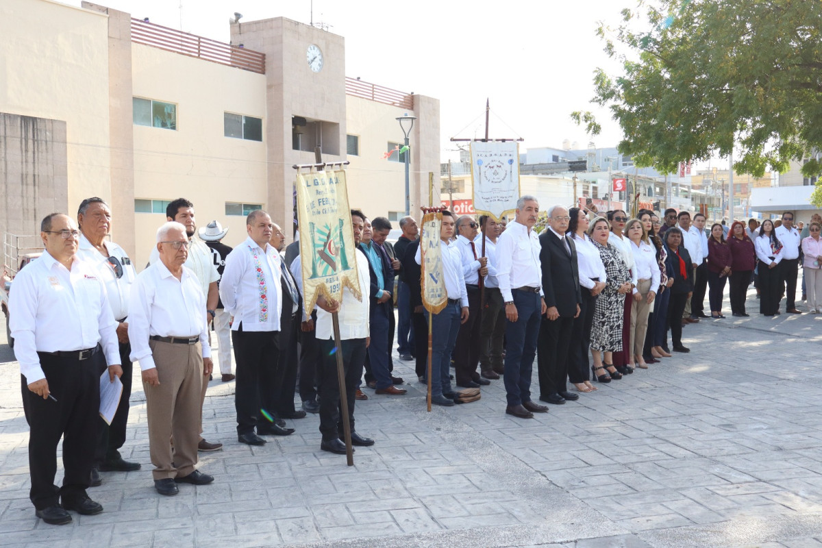 La Secretaría del Ayuntamiento Benilde Elizabeth Molina Leija encabezó el acto cívico, acompañada por autoridades del cabildo . El discurso oficial estuvo a cargo de la quinta regidora Judith Amaro Rivas, quien recordó vida y obra del Benemérito de las Américas.