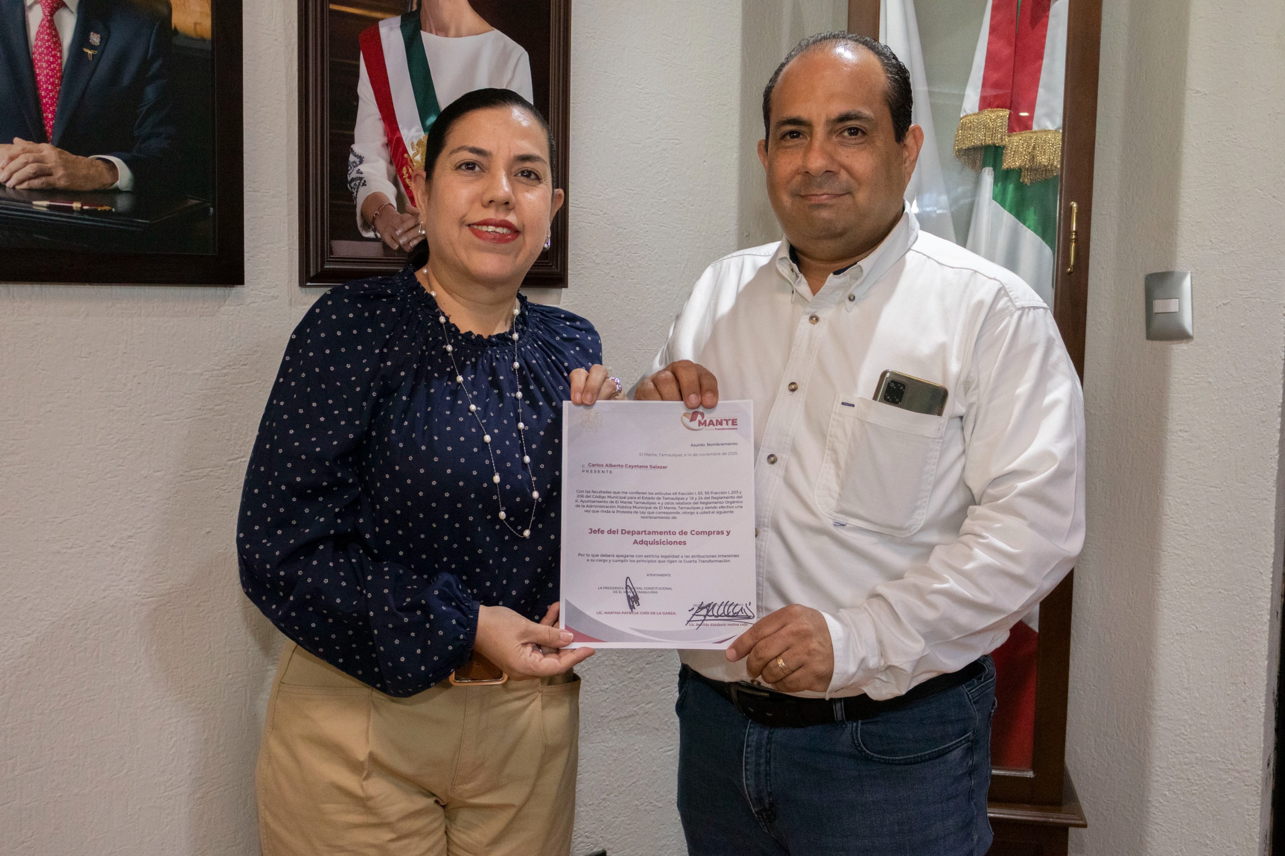 La Presidenta Municipal Patty Chío entregó cinco nuevos nombramientos a funcionarios municipales, que llegan a reforzar el trabajo en áreas de Gobierno para seguir garantizando una buena atención a los ciudadanos.