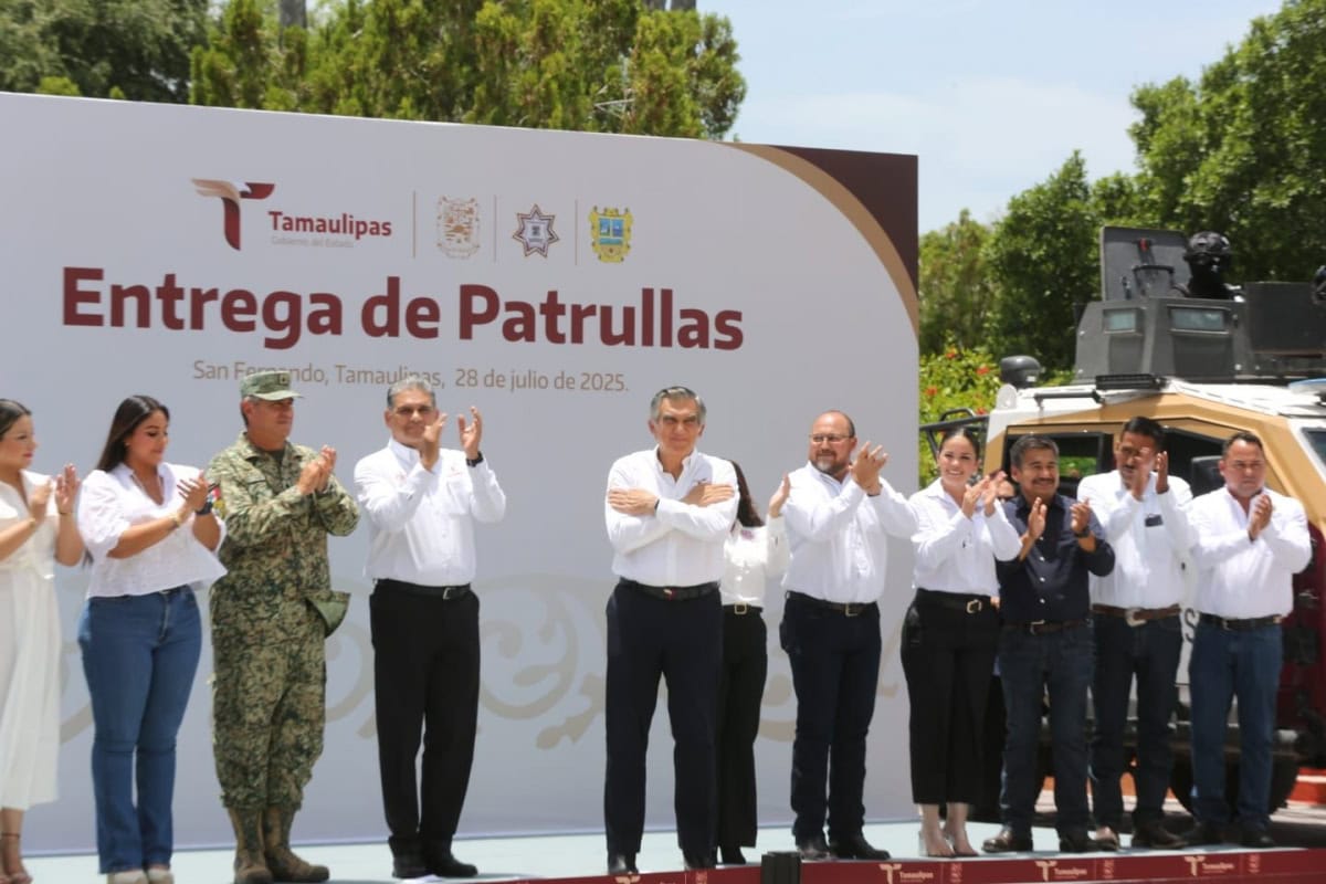 San Fernando, Tamaulipas. – En materia de seguridad pública se trabaja día con día, y esto se refleja en los indicadores que colocan a Tamaulipas entre los diez estados más seguros del país, afirmó el gobernador Américo Villarreal Anaya, al continuar con la entrega de 330 nuevas unidades que se están distribuyendo en todo el estado para reforzar las tareas de patrullaje y vigilancia, en esta ocasión en el municipio de San Fernando y la región.