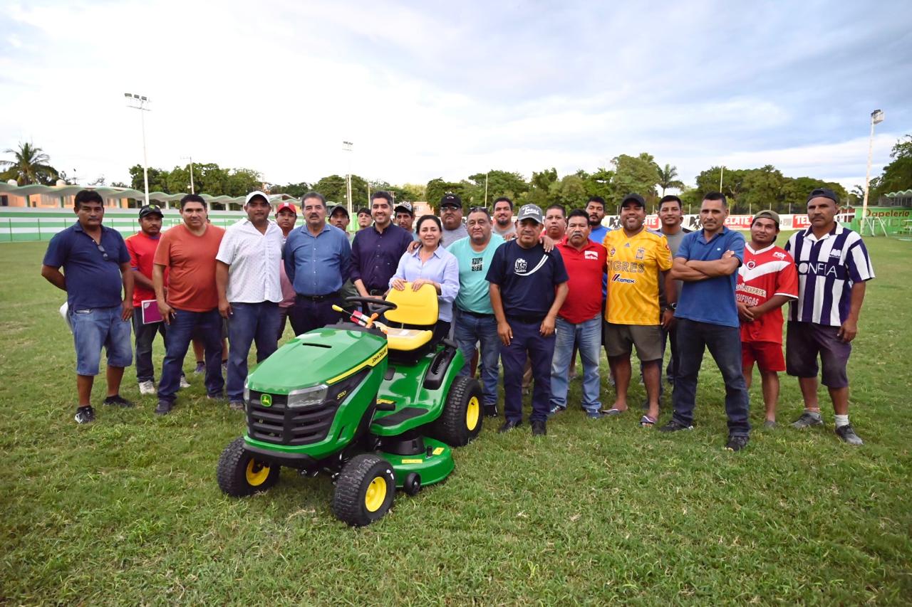 Refuerzan mantenimiento de campos deportivos con entrega de Tracto Podadora en Xicoténcatl