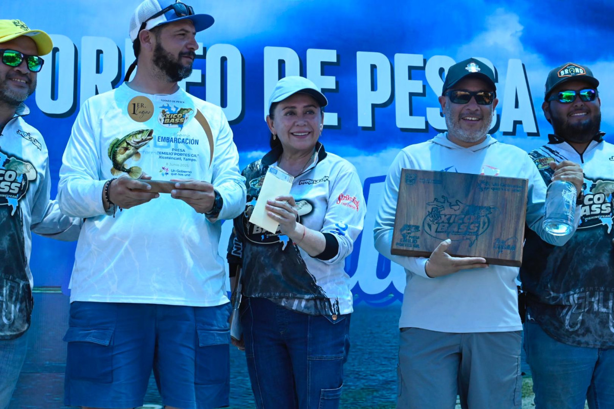 Xicotencaatl,Tam.-Con gran participación y entusiasmo, concluyó este domingo el Torneo de Pesca Xico Bass Fishing Team en la presa Emilio Portes Gil (San Lorenzo), en el marco del Día del Padre. La presidenta municipal Mariela López Sosa encabezó la premiación a las y los ganadores de las categorías Embarcación, Kayak y Orilla, con la presencia de familias completas que disfrutaron de un fin de semana de deporte, turismo y sana convivencia.