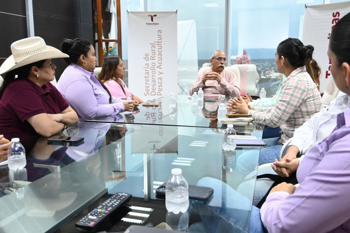 Ciudad Victoria,Tamaulipas. – Con la finalidad de escuchar, colaborar y fortalecer las acciones en favor del sector ganadero, especialmente en lo que respecta a las mujeres que desempeñan un papel fundamental en la actividad, el secretario de Desarrollo Rural, Pesca y Acuacultura, Antonio Varela Flores, sostuvo una reunión con las integrantes de la organización de Mujeres Ganaderas (MUGAN).
