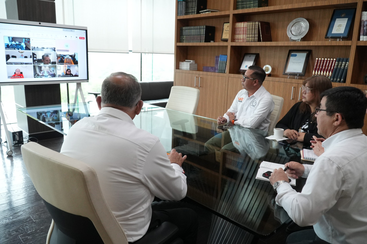 El rector de la Universidad Autónoma de Tamaulipas (UAT), Dámaso Anaya Alvarado, sostuvo una reunión virtual con directores y directoras de las dependencias académicas de los campus Sur, Mante y Victoria, a fin de evaluar las medidas que se han implementado para proteger la integridad de la comunidad universitaria durante la contingencia meteorológica que se ha presentado en la región.