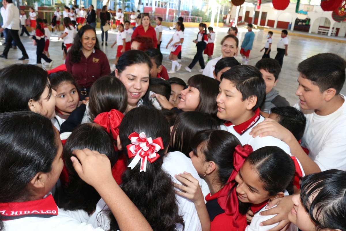 Ante padres de familia, maestros y alumnos, la presidenta destacó que el Gobernador Américo Villarreal Anaya, ha manifestado especial apoyo a la institución al entregar recientemente 19 equipos de aire acondicionado, 15 computadoras y una techumbre. Y destacó que adicionalmente este mismo plantel recibió el apoyo del programa «La Escuela es Nuestra», en donde se logró la aportación de 600 mil pesos, que han sido administrados por los padres de familia, para la realización de mejoras en el plantel.