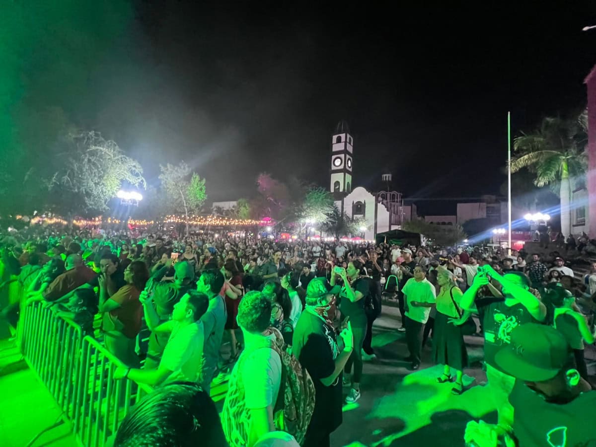 Simultáneamente, en la Plaza Juárez, el ritmo se apoderó de la noche con la presentación de La Ronda Machetera, agrupación nacida de la fusión de La Ronda Bogotá y Pato Machete, que rindió homenaje al inolvidable Celso Piña con un vibrante espectáculo de cumbia y hip hop.