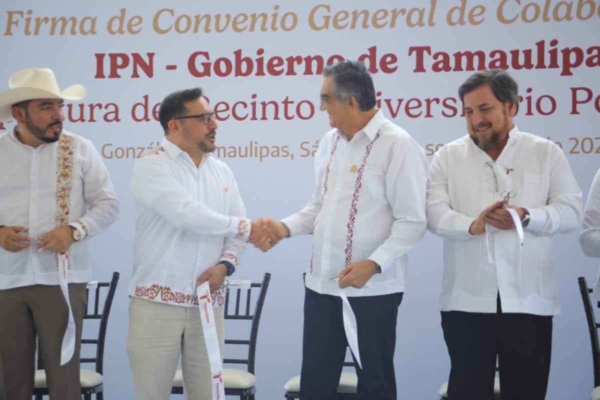 Tras dar la bienvenida al director del IPN, doctor Arturo Reyes Sandoval, a quien reconoció por su destacada trayectoria como científico mexicano, el gobernador aseguró que este esfuerzo conjunto con el municipio de González permitirá a Tamaulipas contribuir a lograr la meta de la presidenta Claudia Sheinbaum: hacer de México una potencia científica y tecnológica.