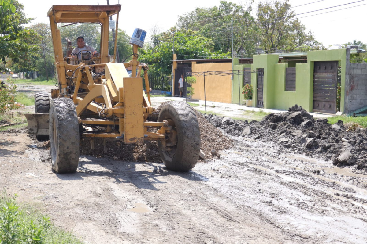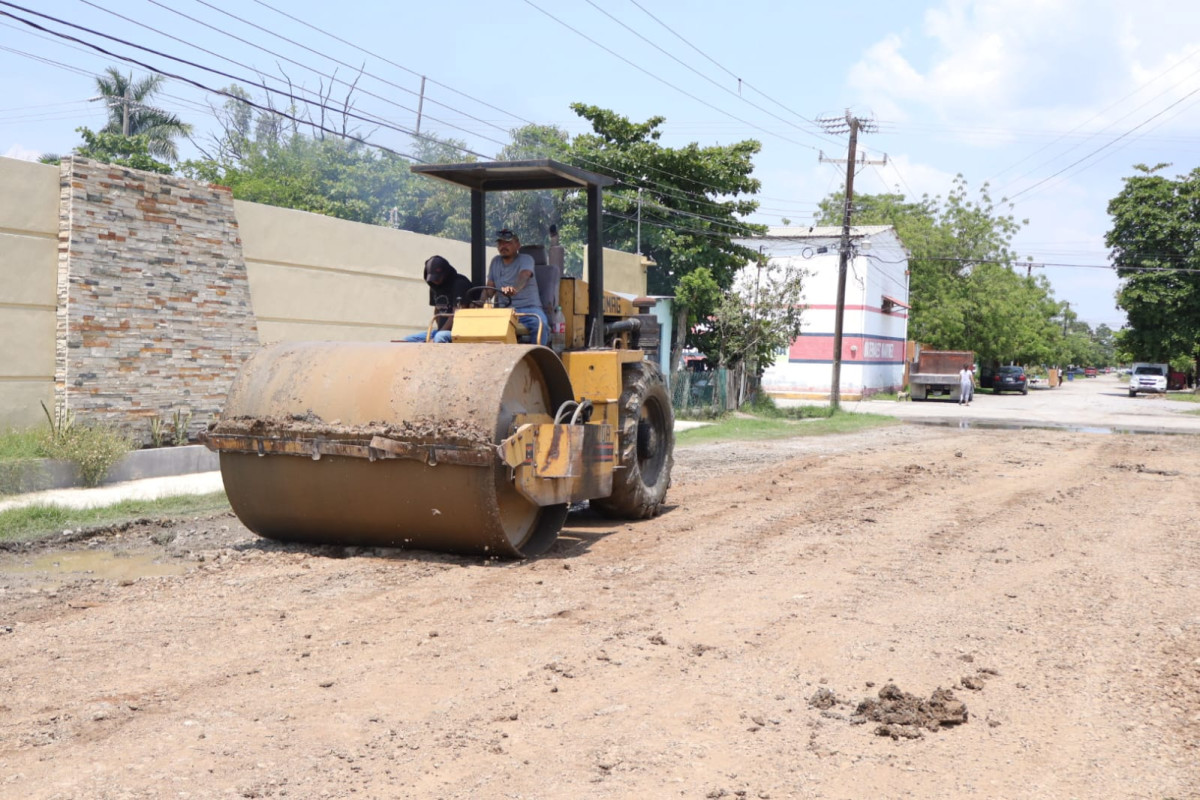 La Presidenta recorrió la calle Emiliano Zapata en donde ya se trabaja en el raspado y depósito de material para su compactación, acción que continuará en las calles, Plutarco E. Calles, Lázaro Cárdenas y Álvaro Obregón de la misma segunda etapa en la Nacional Colectiva.