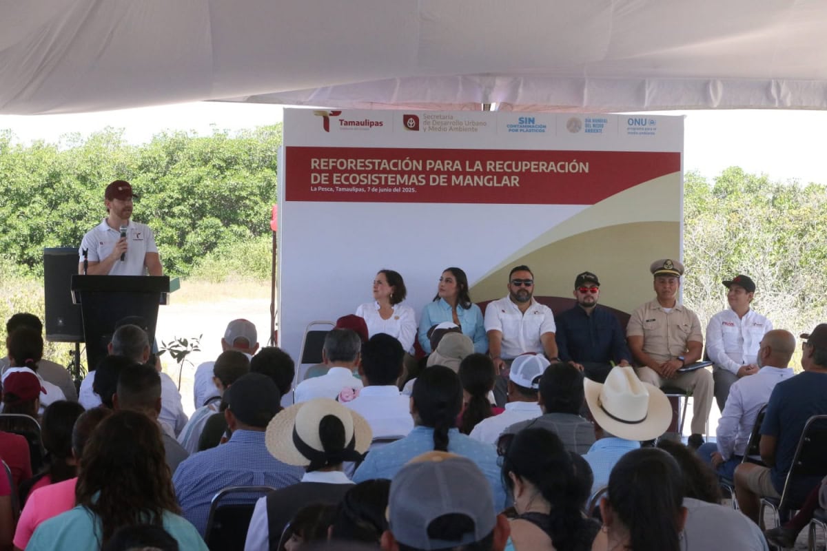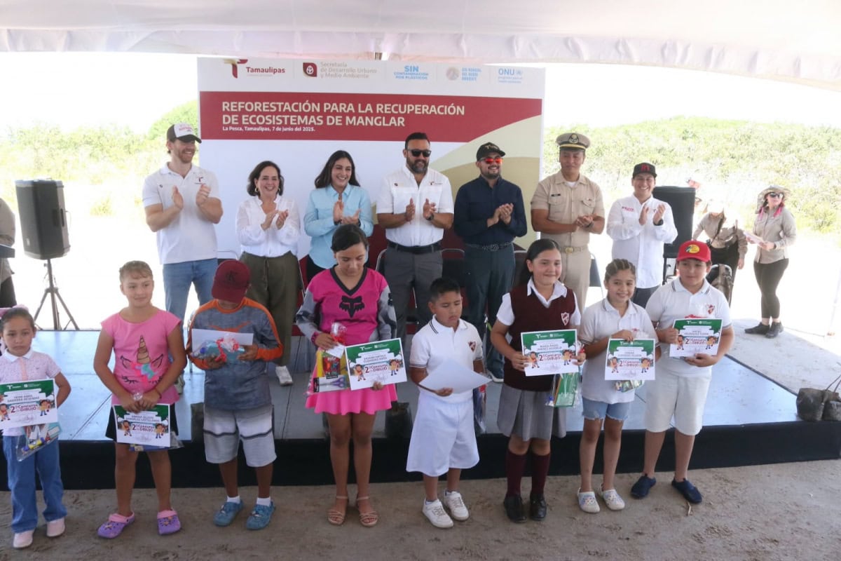 La Pesca, Soto la Marina, Tamaulipas.- En un evento que combinó conciencia ambiental, participación ciudadana y esperanza para las futuras generaciones, la Secretaría de Desarrollo Urbano y Medio Ambiente (SEDUMA) encabezó una jornada de reforestación de manglares y la premiación del Segundo Concurso de Dibujo Infantil, como parte de las actividades conmemorativas por el Día Mundial del Medio Ambiente. La ceremonia fue un llamado a cuidar la naturaleza costera de Tamaulipas.