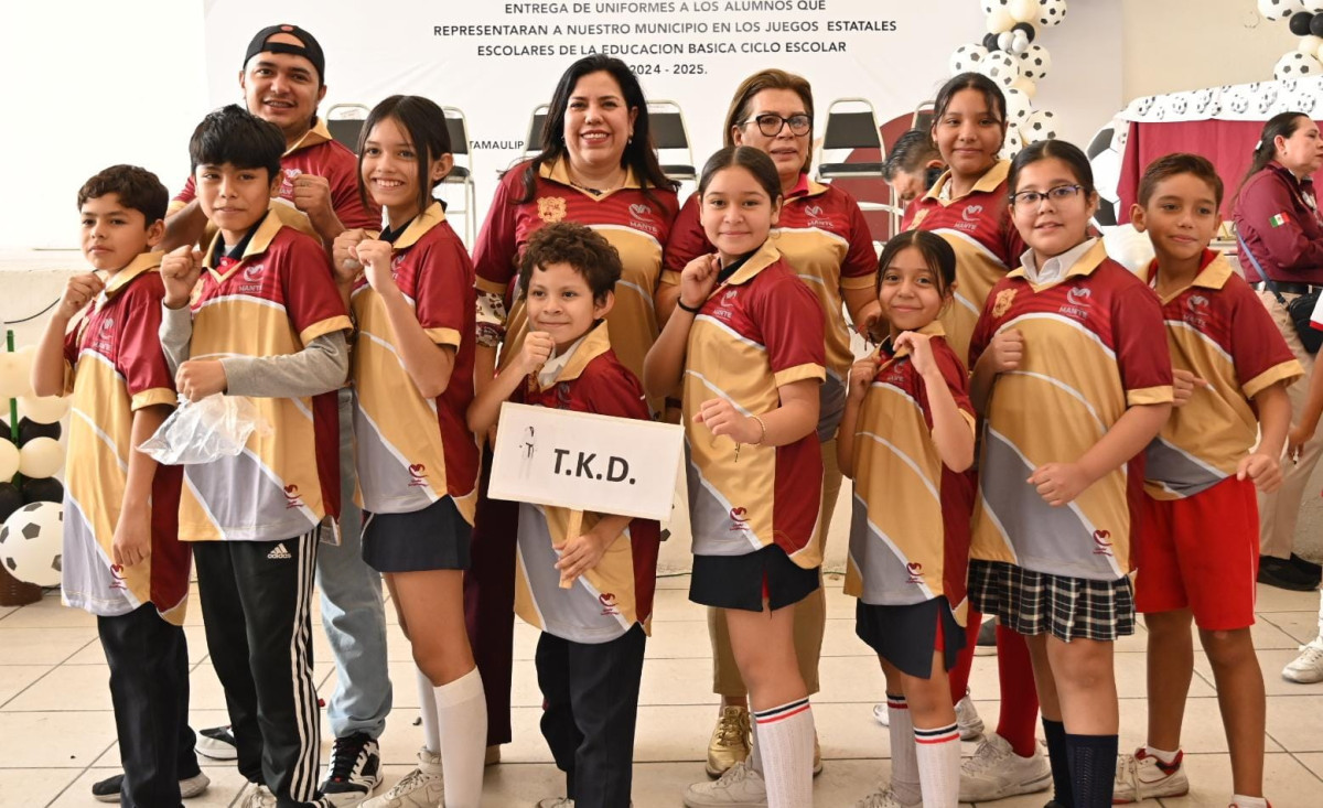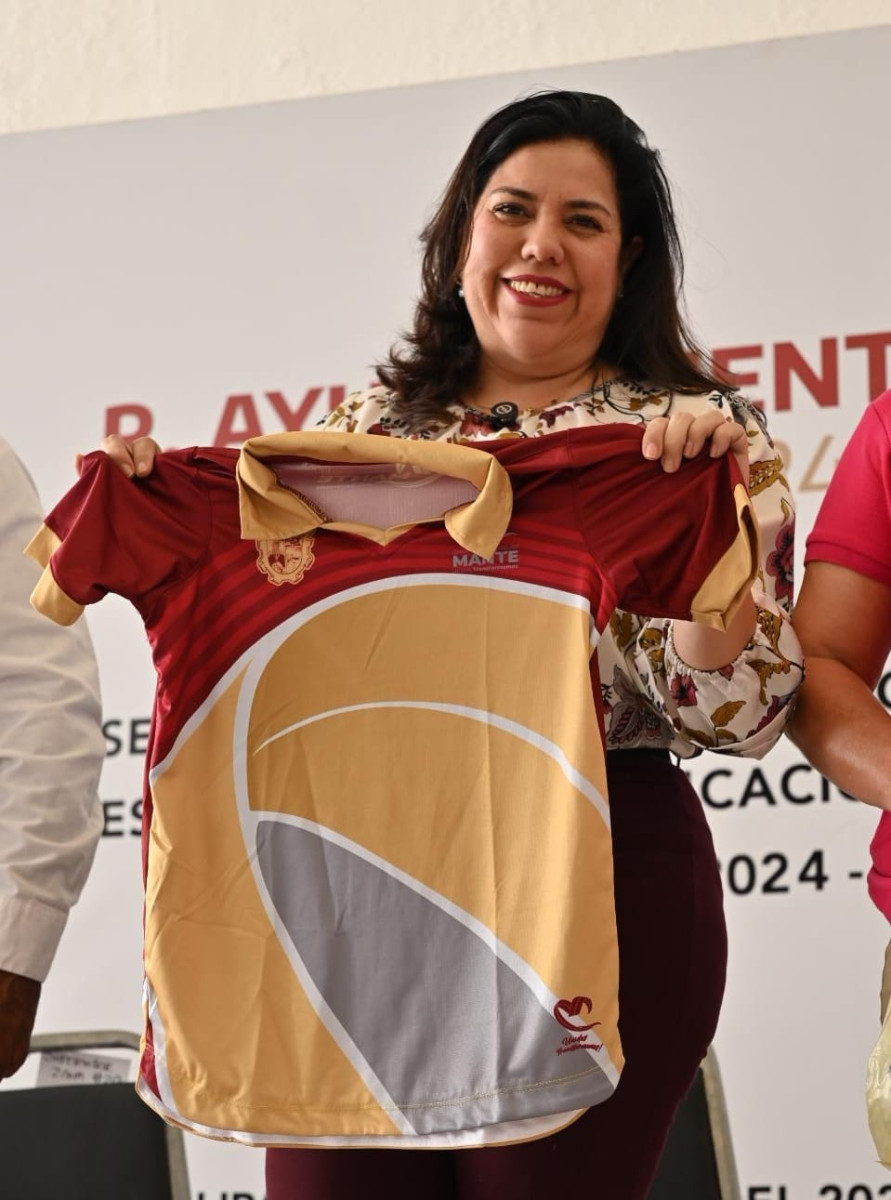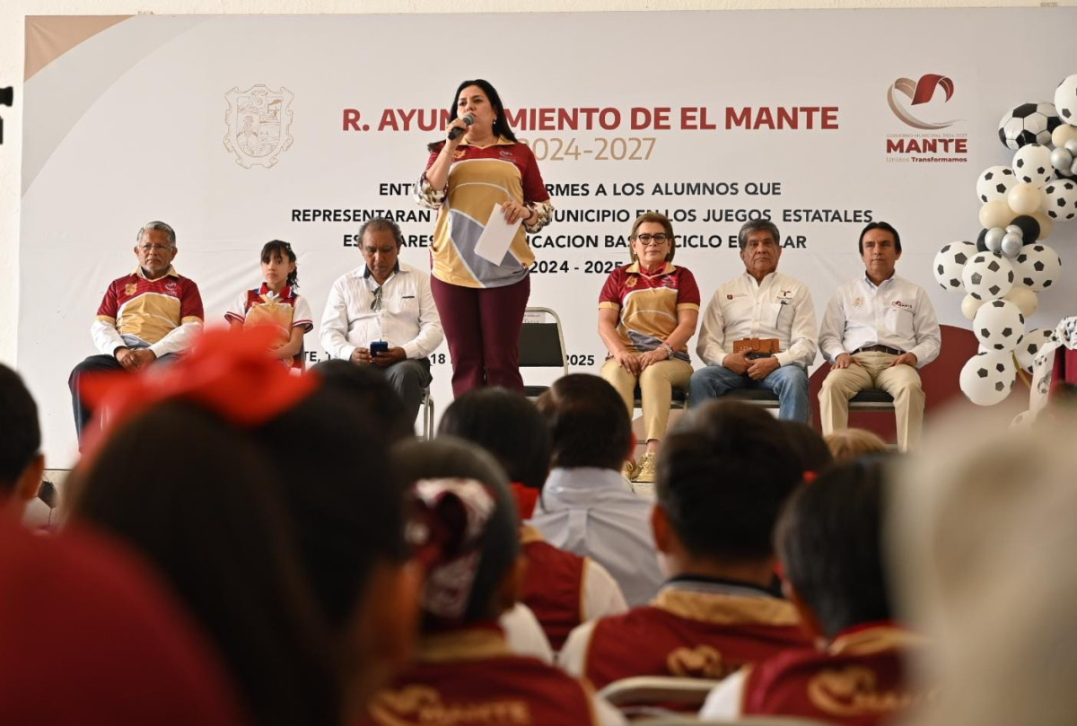 La Presidenta Municipal Patty Chío entregó uniformes a los atletas que representan a El Mante en 10 disciplinas deportivas en la etapa estatal, de los juegos convocados por el Consejo Nacional para el Desarrollo de la Educación Física y el Deporte en la Educación básica ( CONDEBA) 2025.