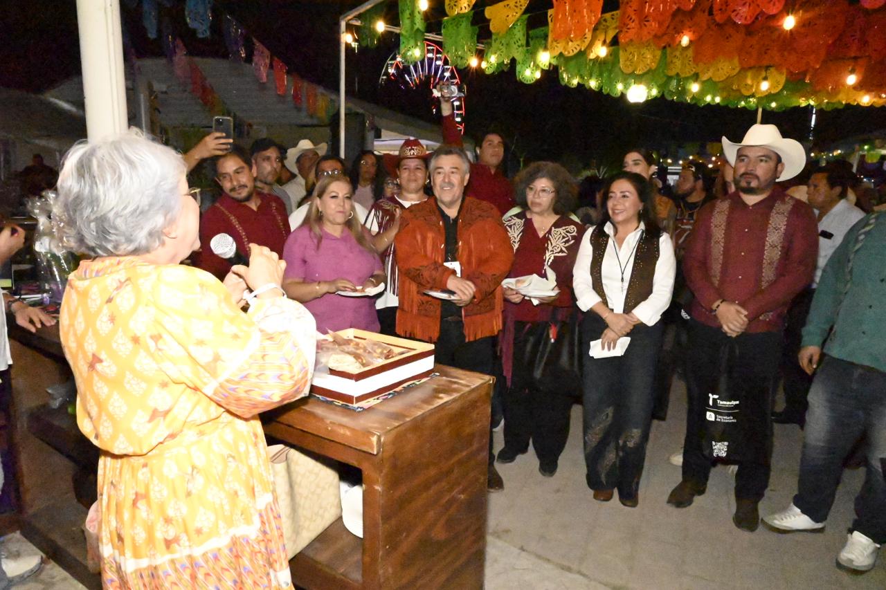 Los visitantes disfrutaron de los sabores más auténticos de nuestra tierra: tamales en hoja de plátano, tacos rojos, pan dulce en forma de mamut y agua de huapilla, que mostraron la riqueza culinaria y cultural que distingue a nuestro municipio.