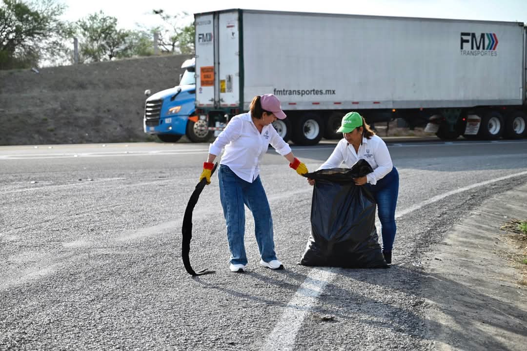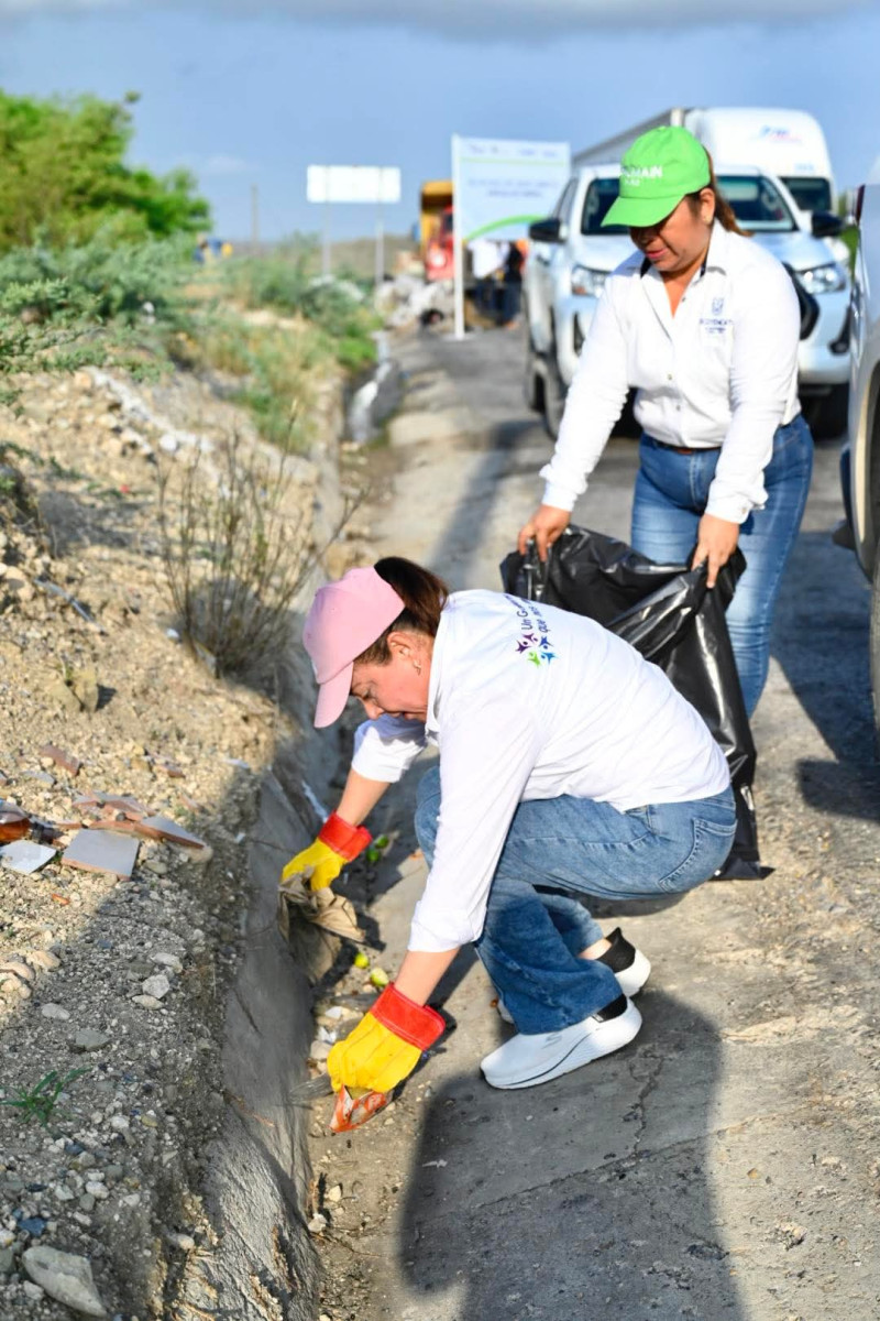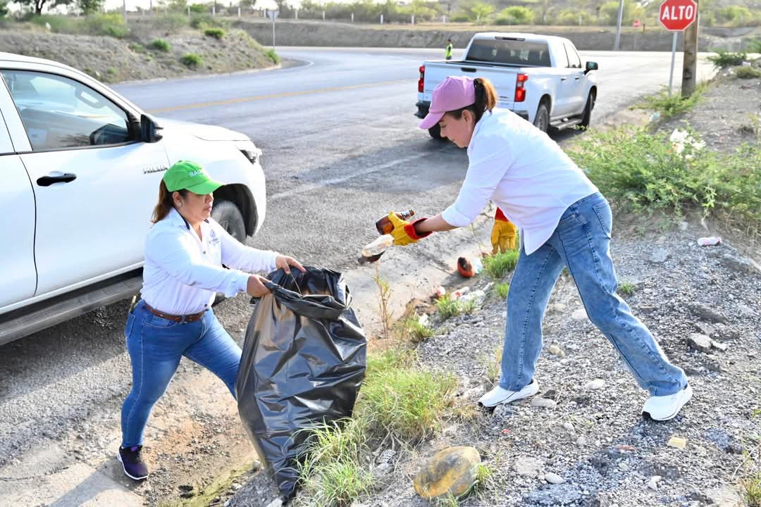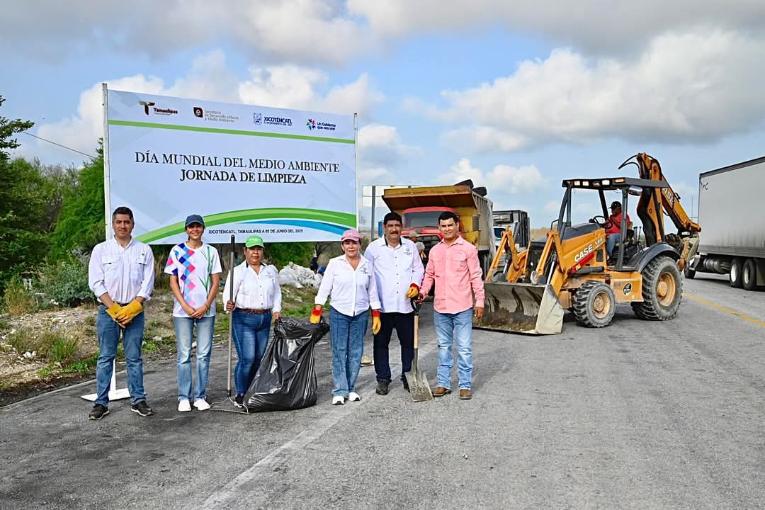 Xicotencaatl,Tam.-En conmemoración del Día Mundial del Medio Ambiente, la alcaldesa Mariela López Sosa encabezó una jornada de limpieza en el tramo de la carretera federal Zaragoza-González, a la altura del entronque de Estación Calles, uno de los principales accesos a Xicoténcatl.