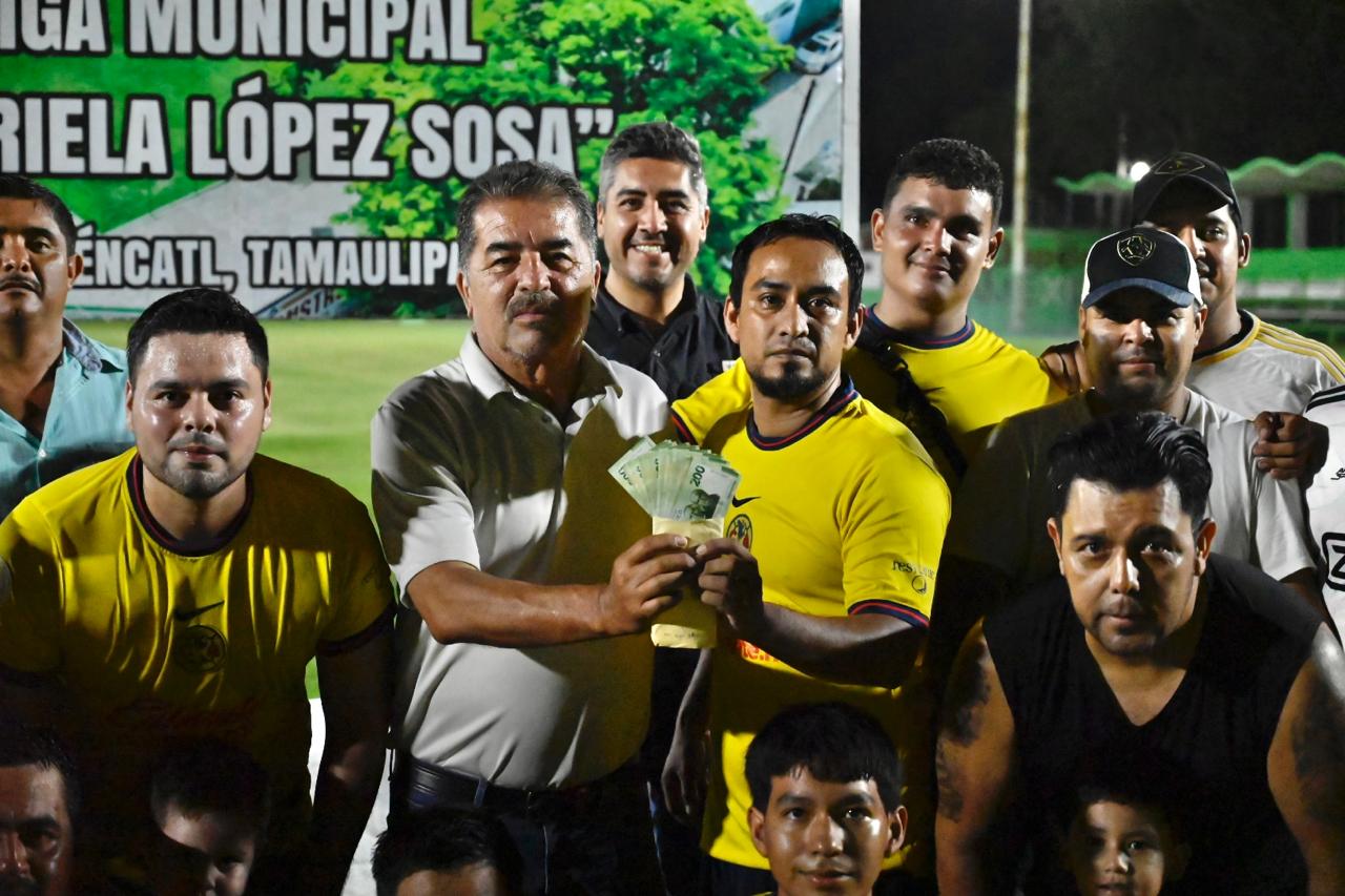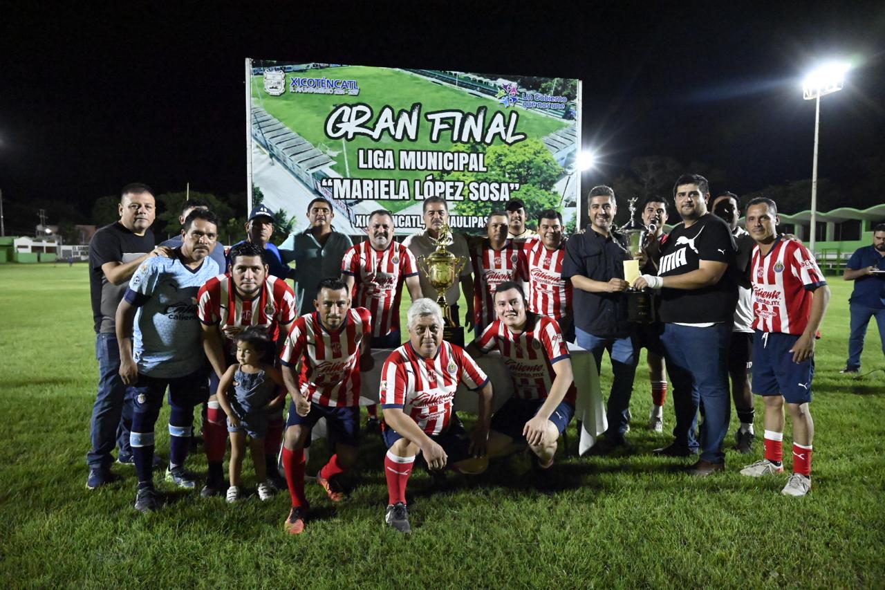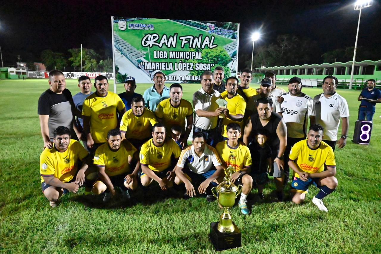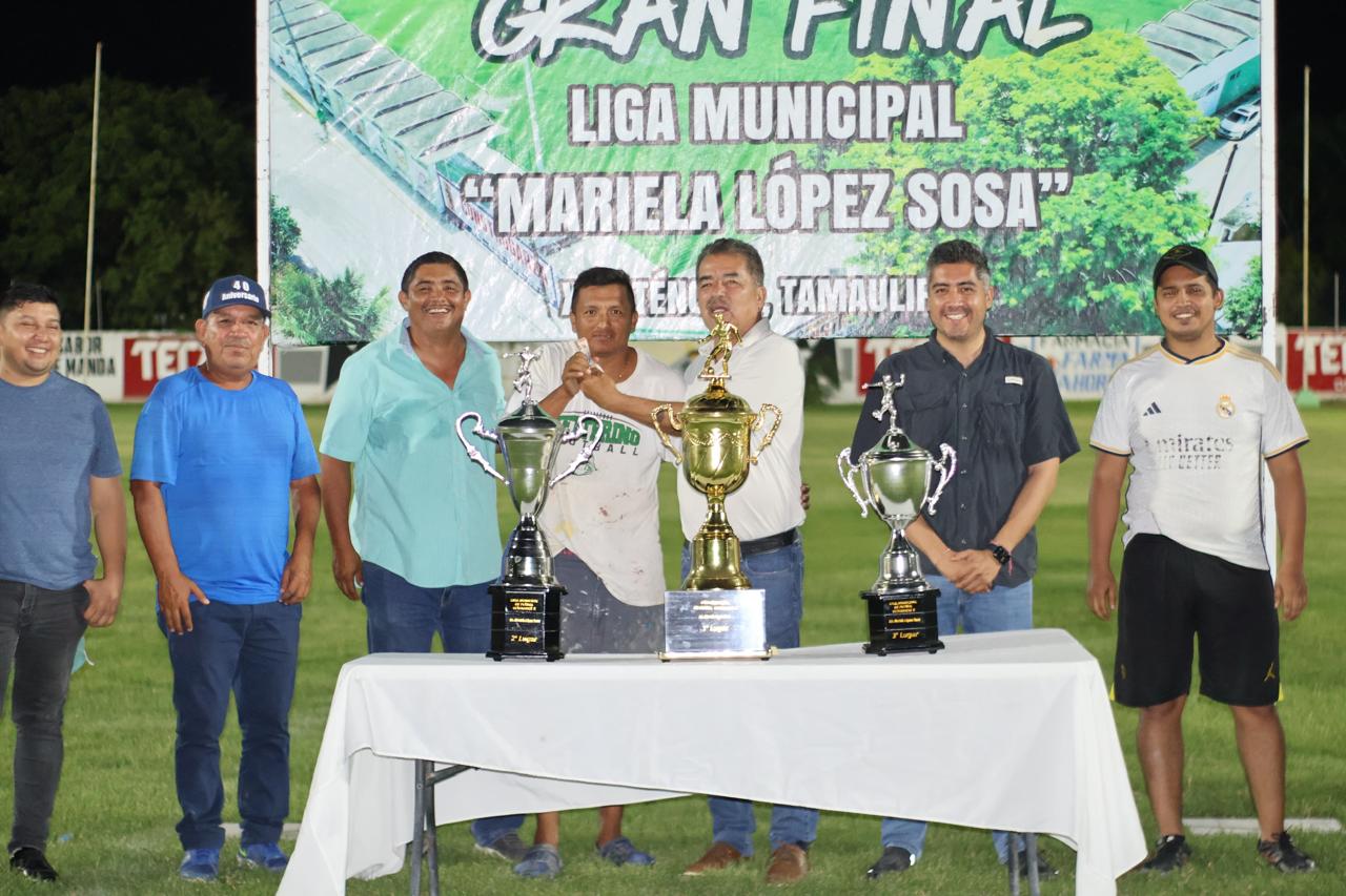 Xicoténcatl, Tam.— Una noche llena de pasión futbolera se vivió en el Estadio Othón Núñez Cáceres durante la Gran Final de la Liga Municipal de Fútbol 8 Veteranos “Mariela López Sosa”, donde se consagró campeón el equipo Ferretería Hernández, seguido de Señor Trompo como subcampeón. El podio lo completaron Deportivo Raga en tercer lugar y George Sport en la cuarta posición.